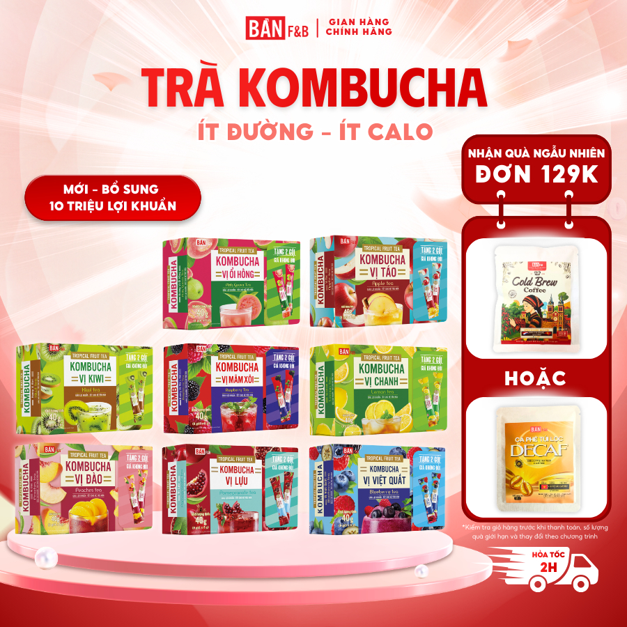 Trà Kombucha Gói Không Calo, Nước Detox Giảm Cân Không Đường Dạng Gói Tiện Lợi Bản F&B