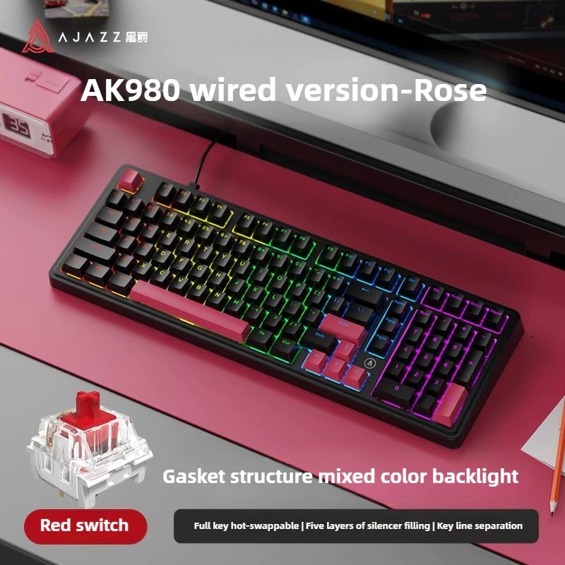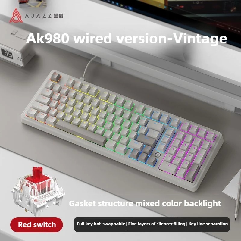 Bàn phím cơ Ajazz AK980 - 3 Mode kết nối - Led RGB- Gasket Mount - Pin 8000Mah