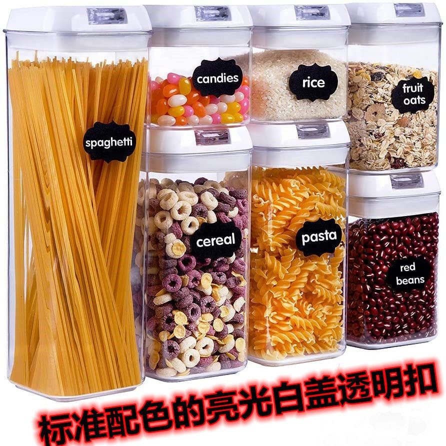 Bộ bảy món hộp nhựa kín để bảo quản thực phẩm trong bếp, hộp đựng ngũ cốc trong suốt chống ẩm