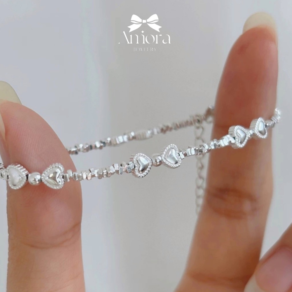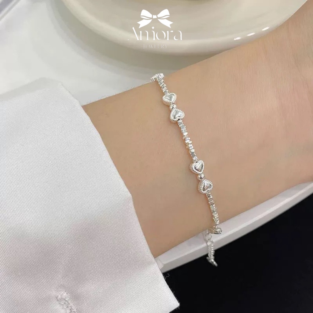 Lắc tay nữ S925 AMORA lắc hạt vỡ mix nơ dễ thương LT008