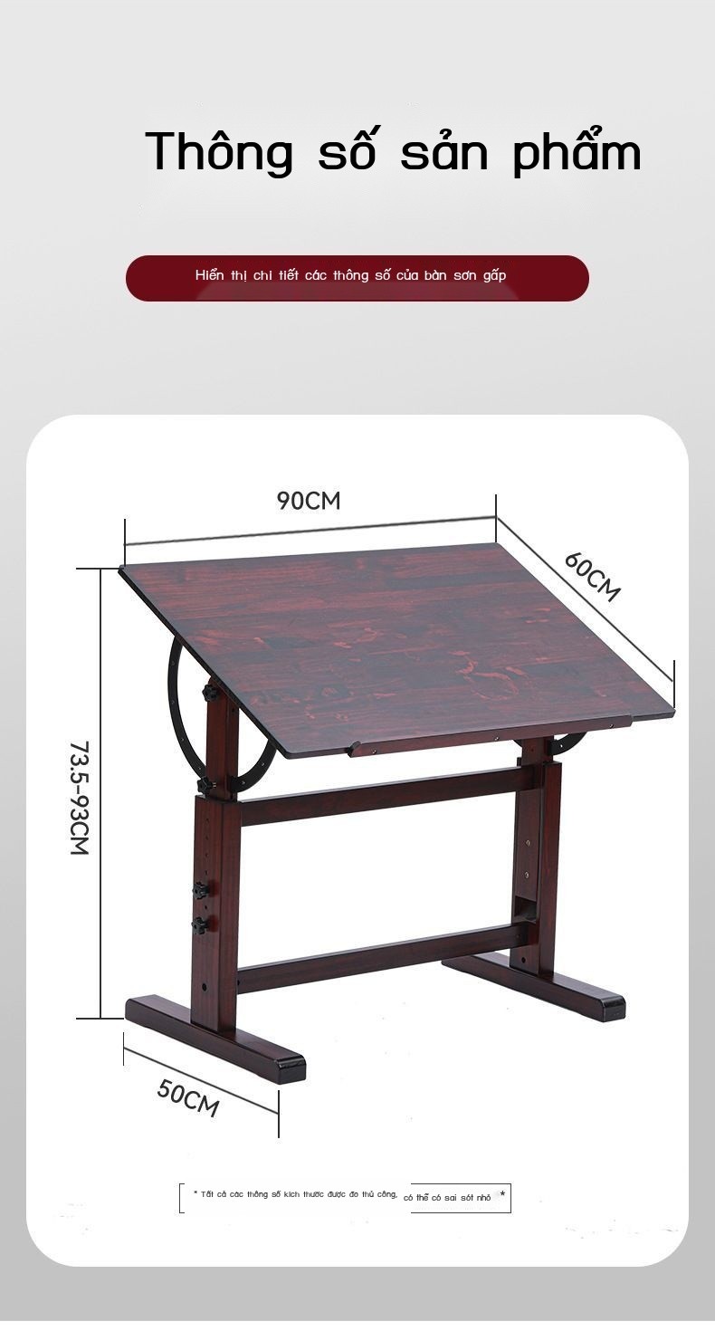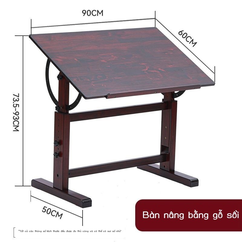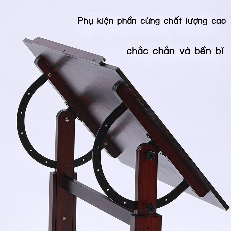 ☉Bàn vẽ nâng gỗ nguyên khối bàn vẽ nghệ thuật óc chó màu đen có thể điều chỉnh bàn làm việc nghệ thu