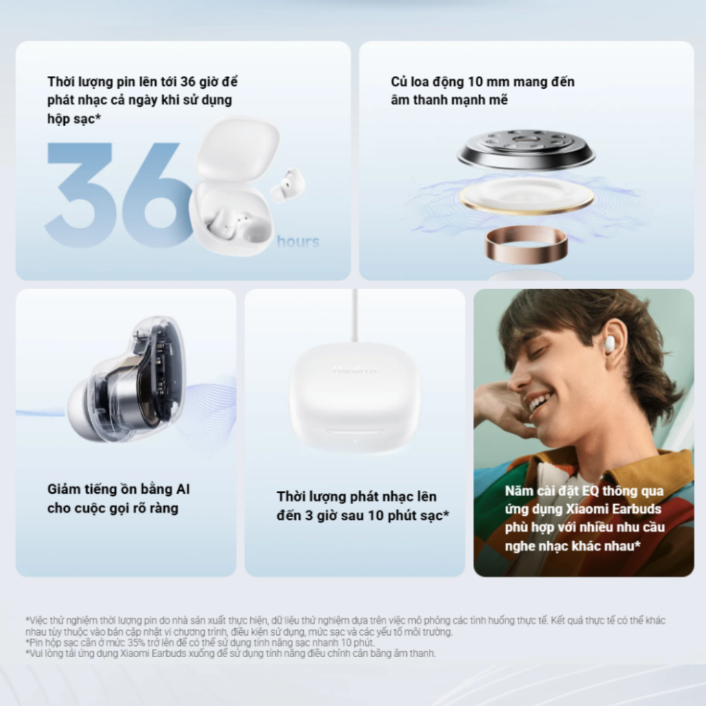 Tai nghe giảm tiếng ồn Bluetooth Xiaomi Buds 6 play - Thời lượng pin 36h - Bảo hành chính hãng 12 tháng