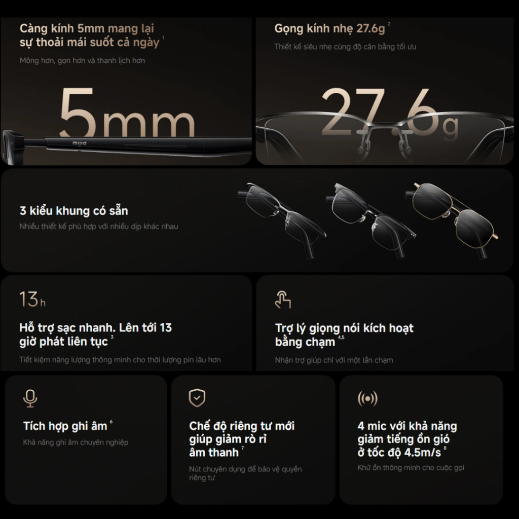 Kính Âm Thanh Thông Minh Xiaomi Mijia Smart Audio Glasses - Nghe gọi, Ghi Âm, Chống nước, Thời Trang - Hàng Chính Hãng