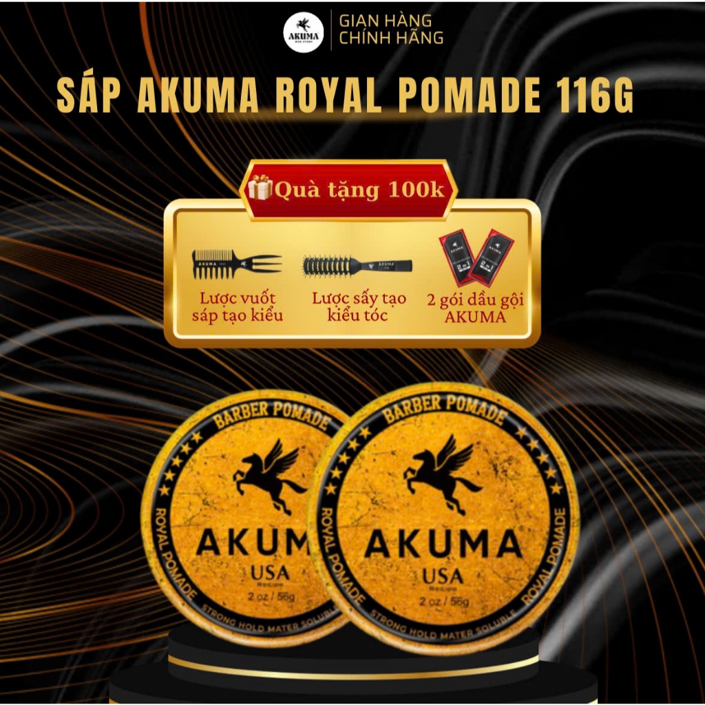 Sáp Vuốt Tóc Nam AKUMA ROYAL POMADE – Giữ Nếp Chuẩn Barber, Không Bết Dính, Hương Thơm Nước Hoa Nam Tính – Tặng Kèm Lược