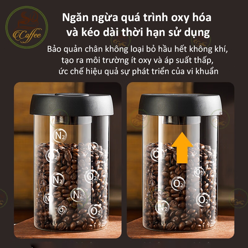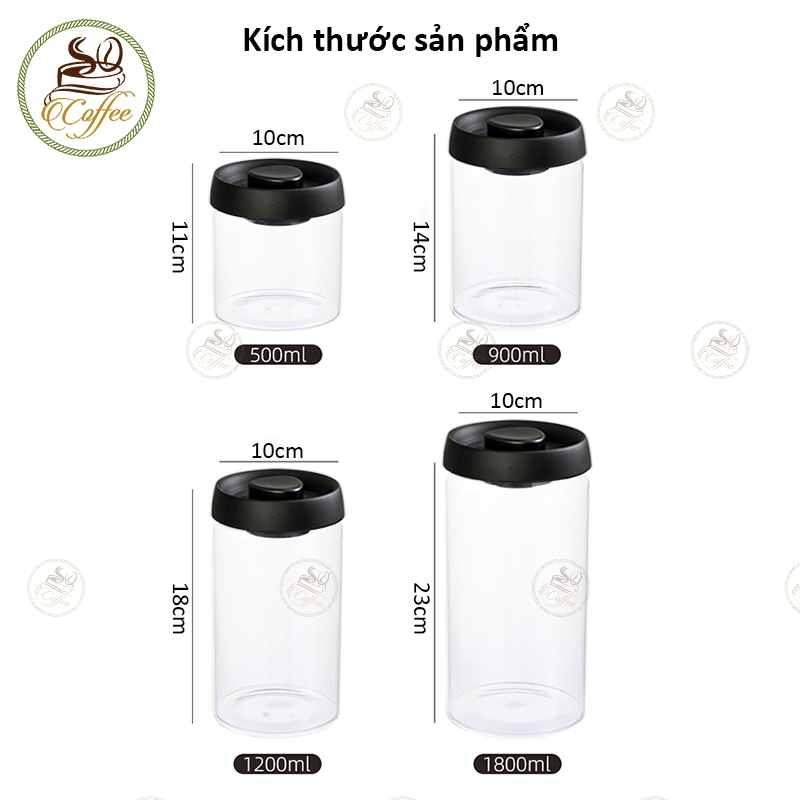 Hũ đựng cà phê chân không 500ml/900ml/1200ml/1800ml Hũ thuỷ tinh cà phê Đa năng Lọ đựng cà phê