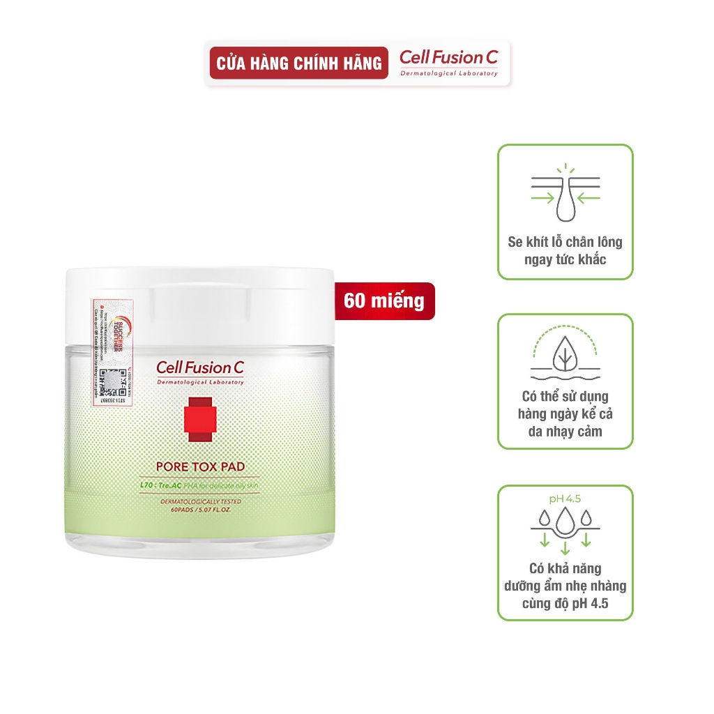 Toner Pad Làm Sạch Sâu & Thu Nhỏ Lỗ Chân Lông Chứa PHA Cell Fusion C Pore Tox Pad