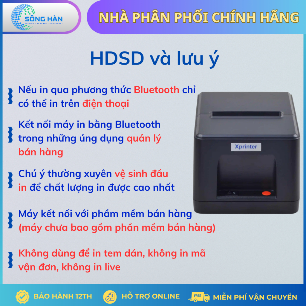 Máy in hóa đơn, in bill Xprinter 58IIB in bằng điện thoại kết nối USB + Bluetooth khổ giấy 58mm