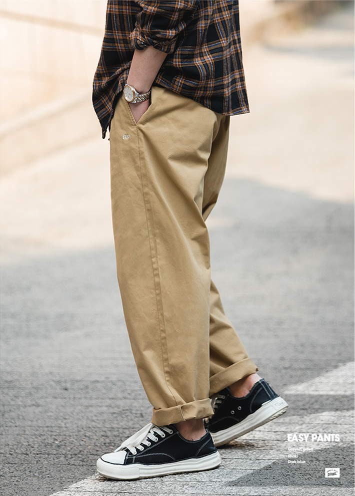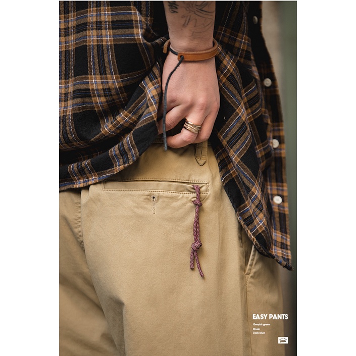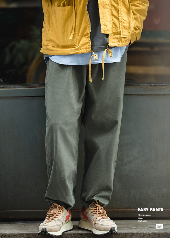 Retro nam bố quý ông Nhật Bản Easypants dáng rộng quân đội xanh co giãn bó sát nam học thuật quần dài