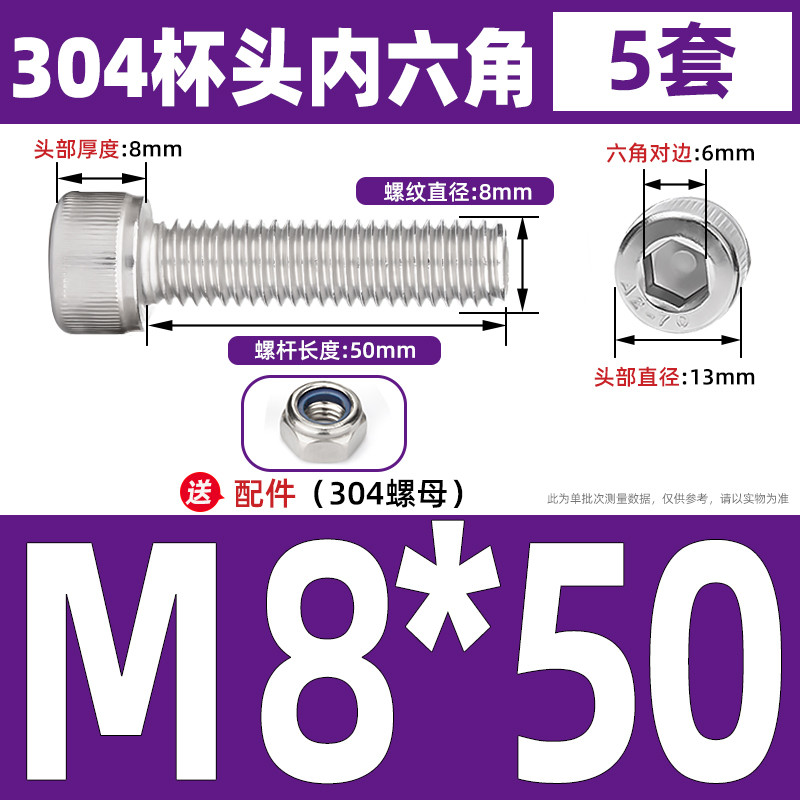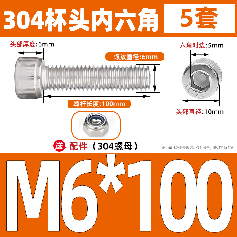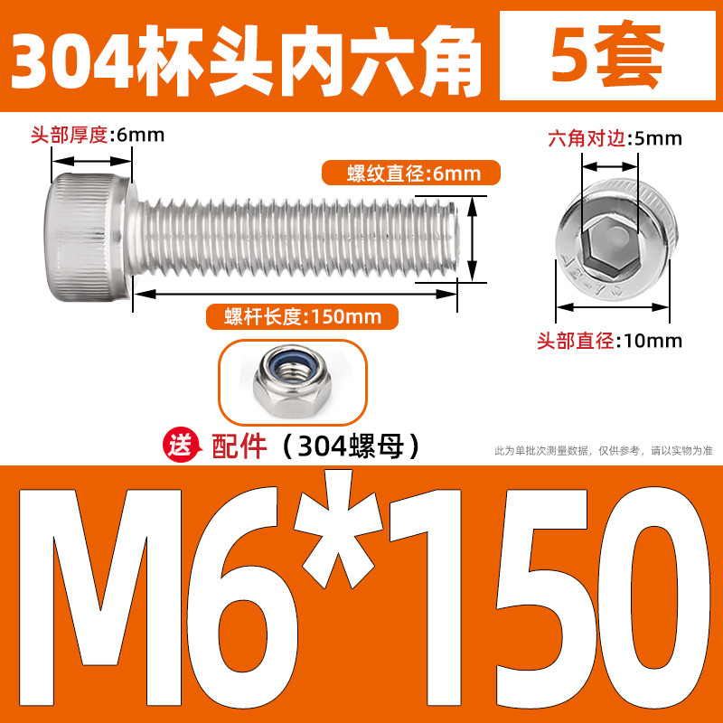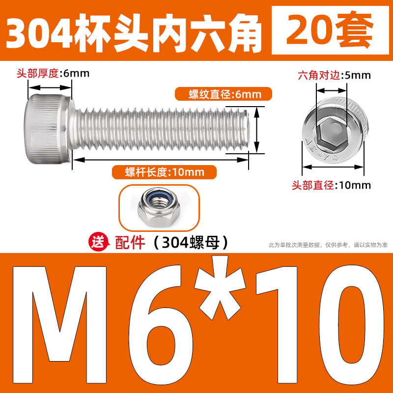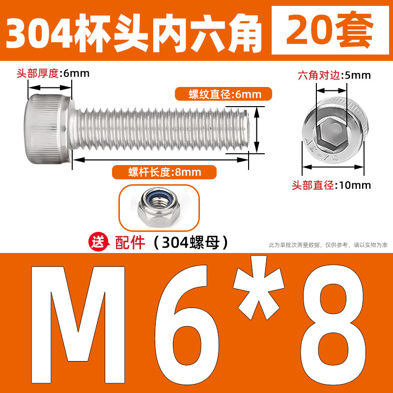 [LMQ-BTNLJLS] Vít nắp đầu ổ cắm hình lục giác SUS304 + Bộ hai mảnh đai ốc tự khóa M5 / M6 / M8 Kết hợp bu lông đầu ổ cắm lục giác, Chủ đề đầy đủ, Chiều dài 6mm-200mm