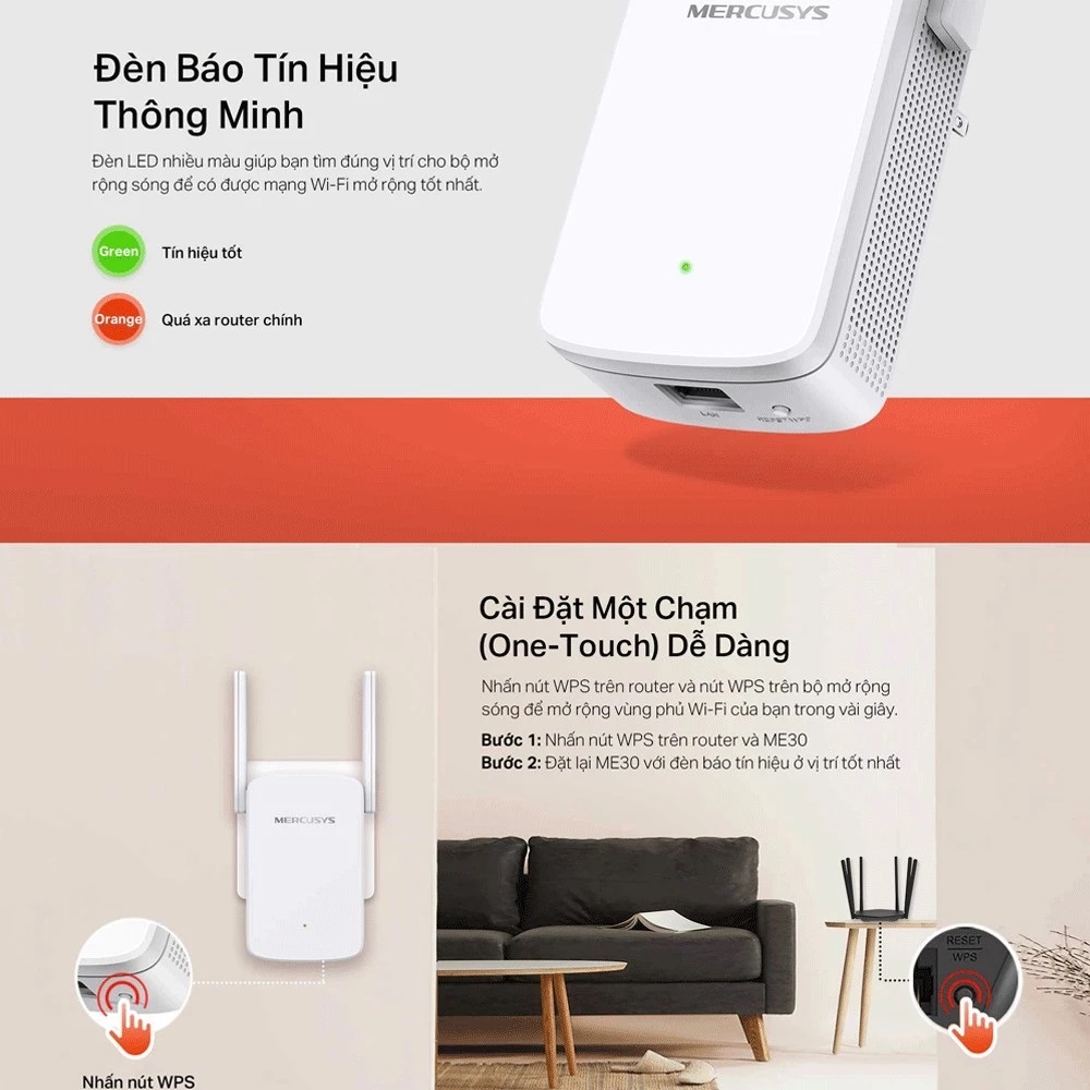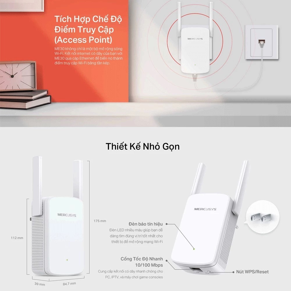Bộ Kích Sóng Wifi Mercusys ME30 Chuẩn AC 1200Mbps chính hãng