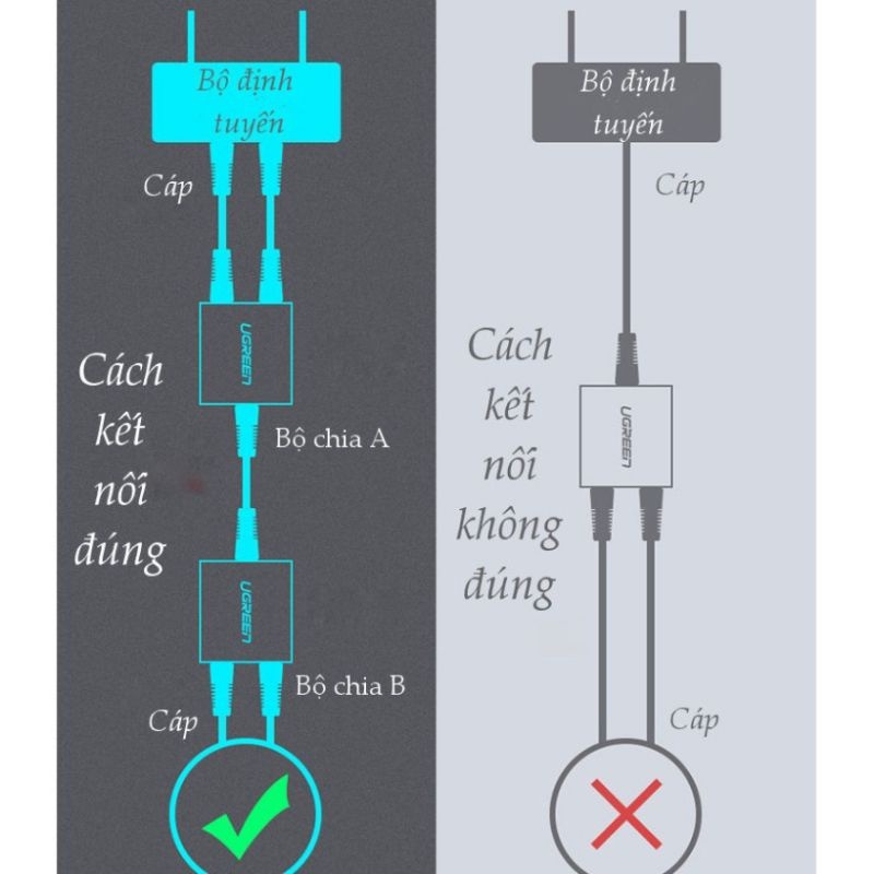 Đầu chia mạng LAN RJ45 1 ra 2 (2 chiếc/túi) chính hãng Ugreen 50923 CM210 - Bảo Hành 18 Tháng