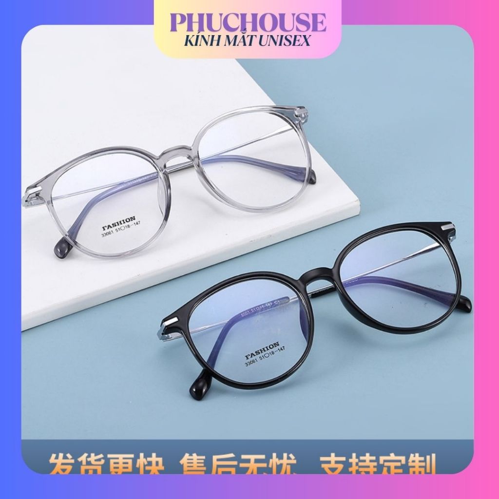 PHUCHOUSE - Kính gọng tròn TR90 thời trang,gọng khung lớn mỏng Danyang,siêu nhẹ có thể thay tròng làm kính cận cao cấp
