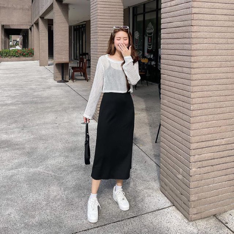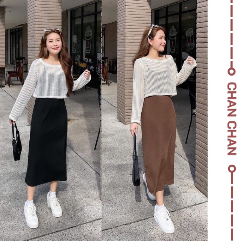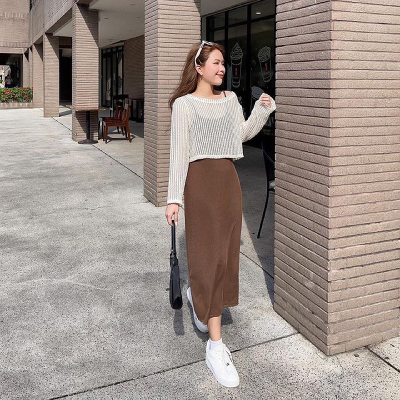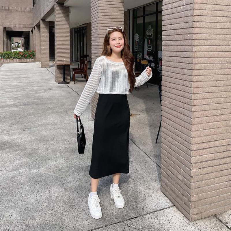 Set váy 2 dây kèm áo lưới ngoài phong cách lịch sự trẻ trung