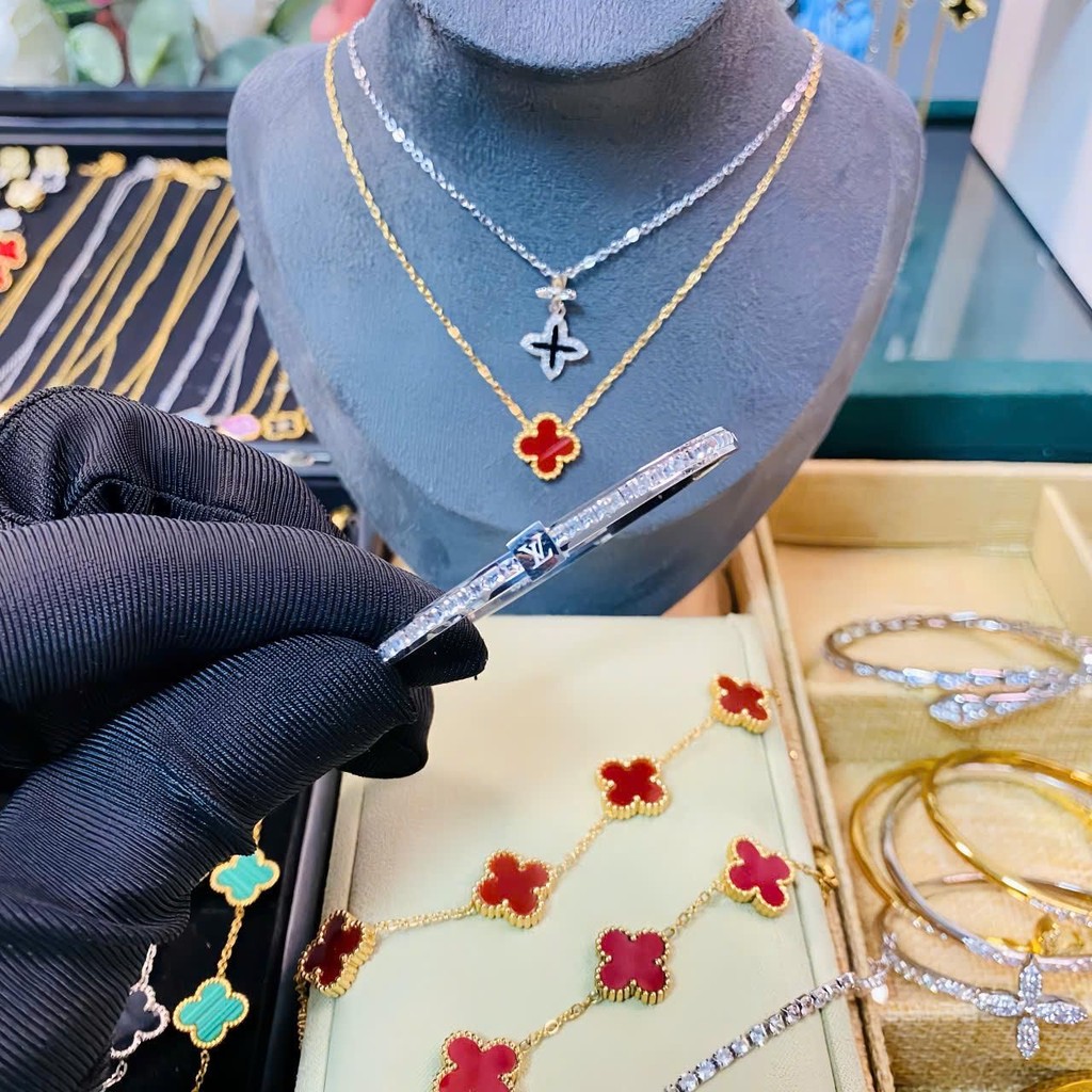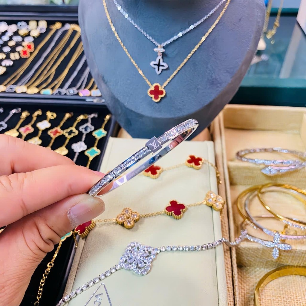 ```Vòng tay titan đính đá cao cấp, phong cách sang trọng dễ dàng phối hợp với trang phục```