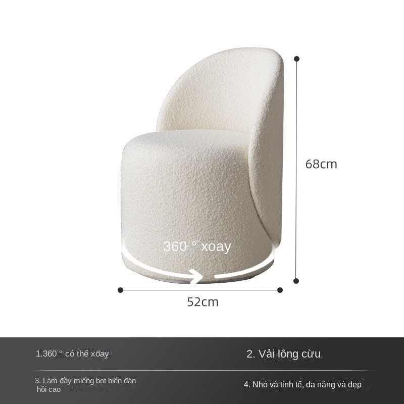 Ghế trang điểm xoay, ghế tròn đơn giản cho phòng ngủ, ghế có tựa lưng