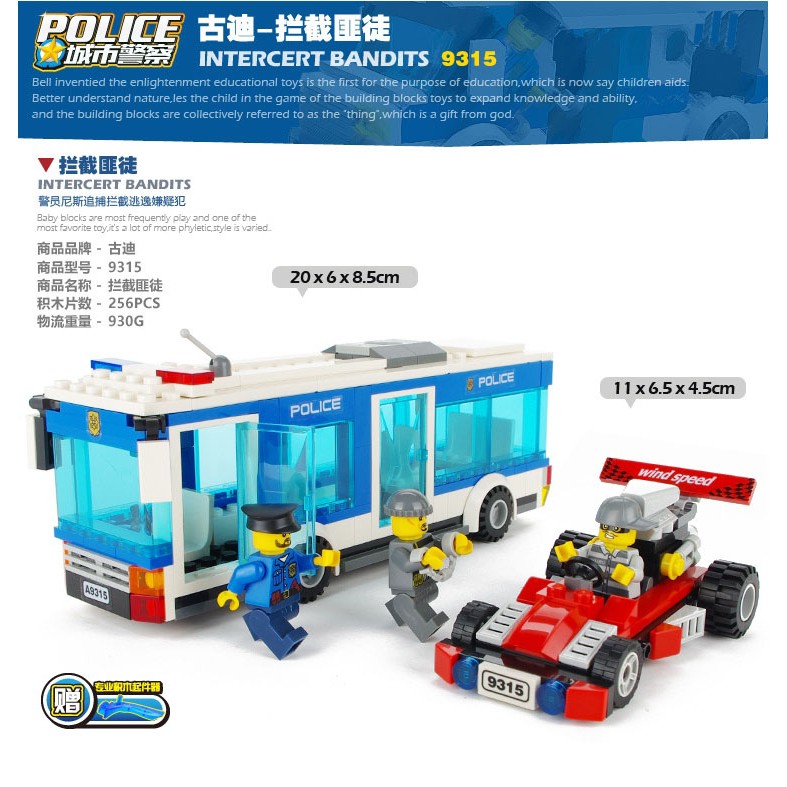Bộ xếp hình Gudi 9315 Xe buýt cảnh sát - 256 chi tiết