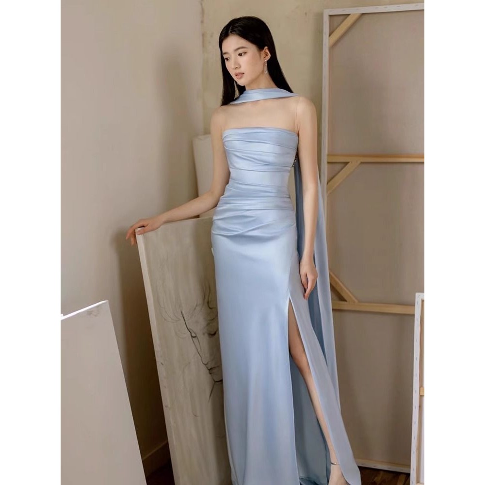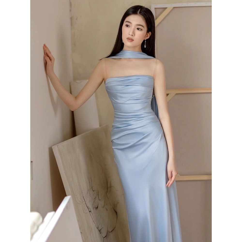 Váy Dạ Hội Màu Xanh Váy Dạ Hội Nữ Kiểu Mới Cao Cấp Cao Cấp Sang Trọng Nhẹ Nhàng
