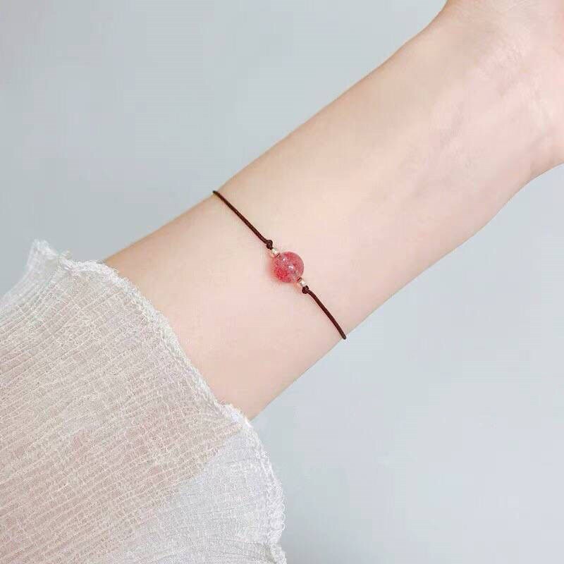 Vòng tay dây đen đỏ mặt hình hạt đá pha lê dâu tây/ đá mặt trăng/ thạch anh tím / aquamarine cho cặp đôi