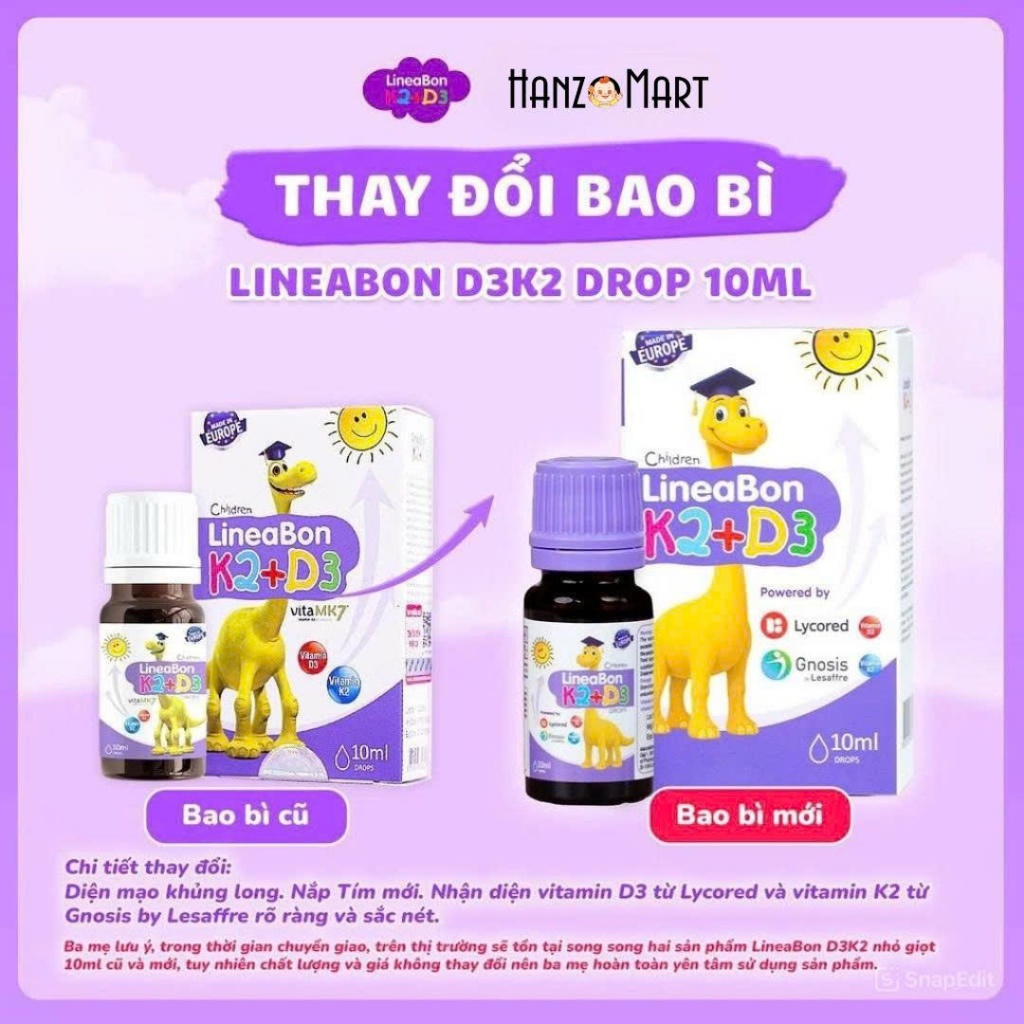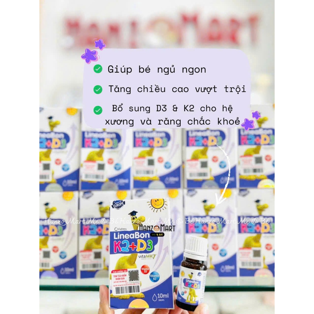 Lineabon K2+D3 bổ sung vitamin d3 cho trẻ sơ sinh, giúp hấp thụ d3k2 canxi, giảm còi xương, tăng chiều cao