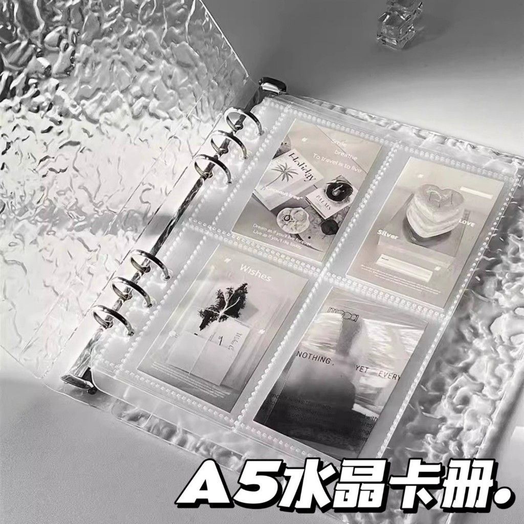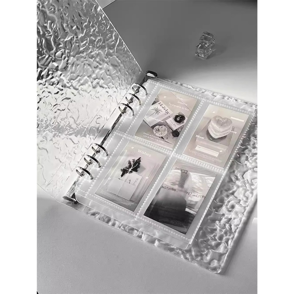 Album đựng thẻ mini A5 – Bìa mica sóng nước kiểu đá lạnh – 4 ô mỗi trang – Lưu trữ thẻ ảnh