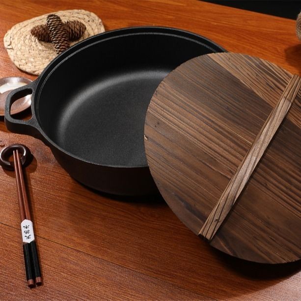 Chảo rán gang dày, sâu, không tráng, chống dính, chảo bánh kếp gia đình, gang đa chức năng