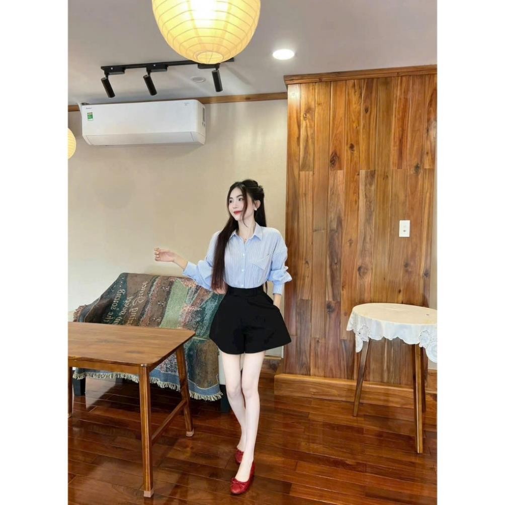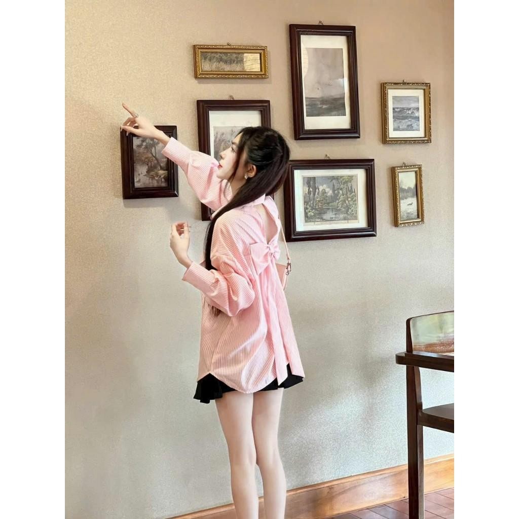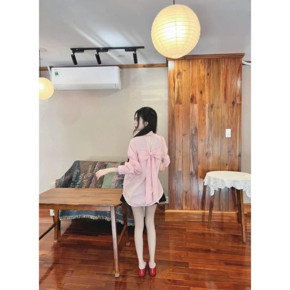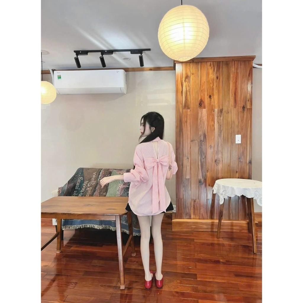 SÉT ÁO SƠ MI SỌC LƯNG NƠ PHỐI QUẦN KAKI Top Xanh