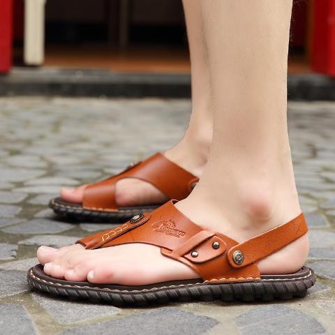 Dép nam mùa hè, giày bãi biển thoải mái, không trượt, phong cách Hàn Quốc, dép da nam thời thượng, dép toe post, kích th