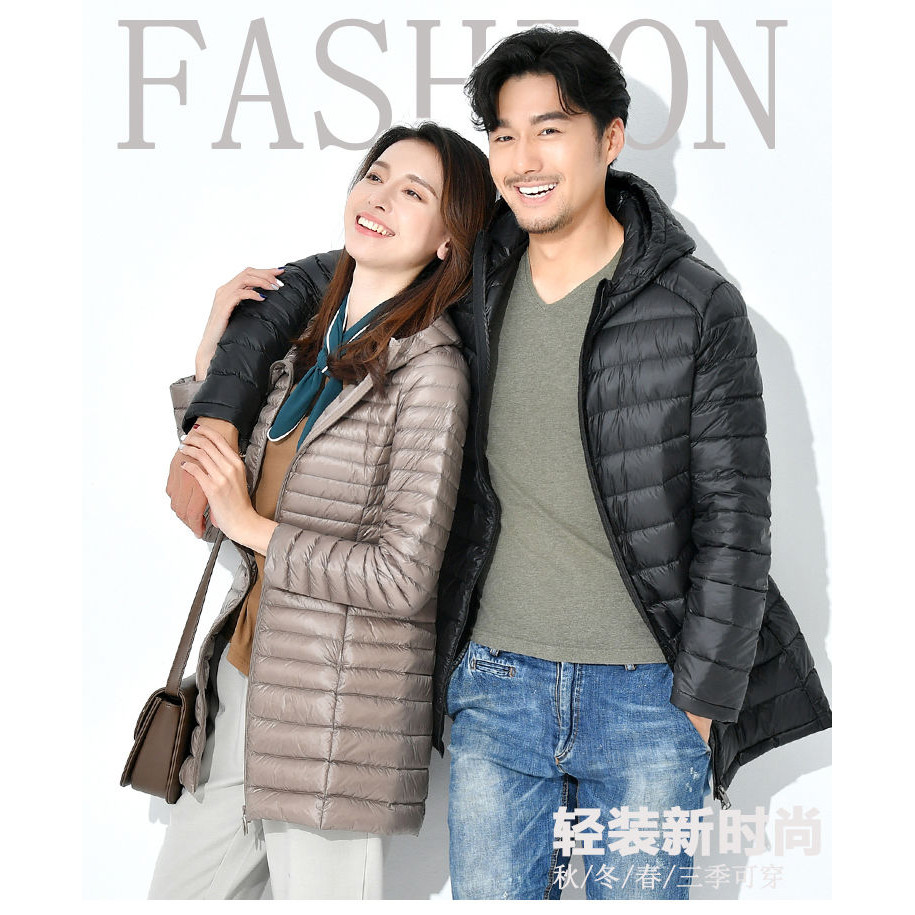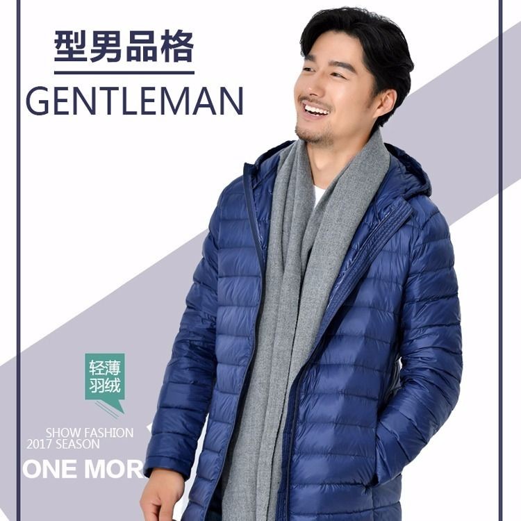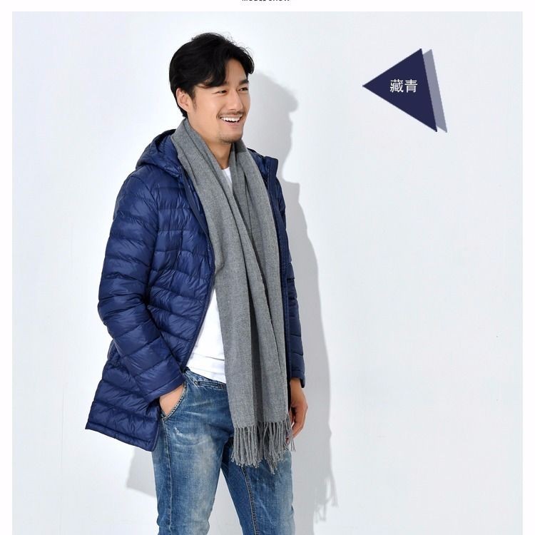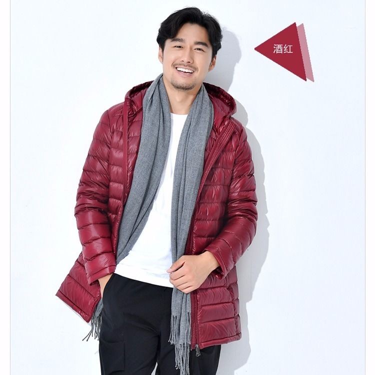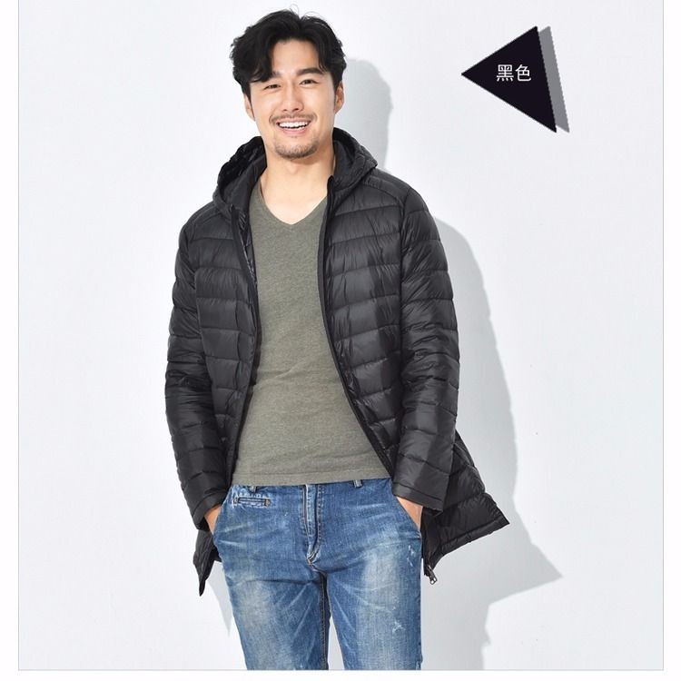 Áo khoác nam mới nhẹ, dài vừa, phong cách Hàn Quốc, ôm sát, mỏng, có mũ, áo khoác mùa đông siêu nhẹ