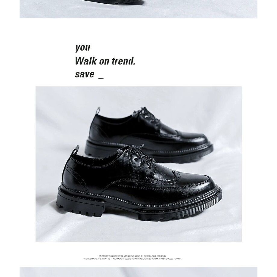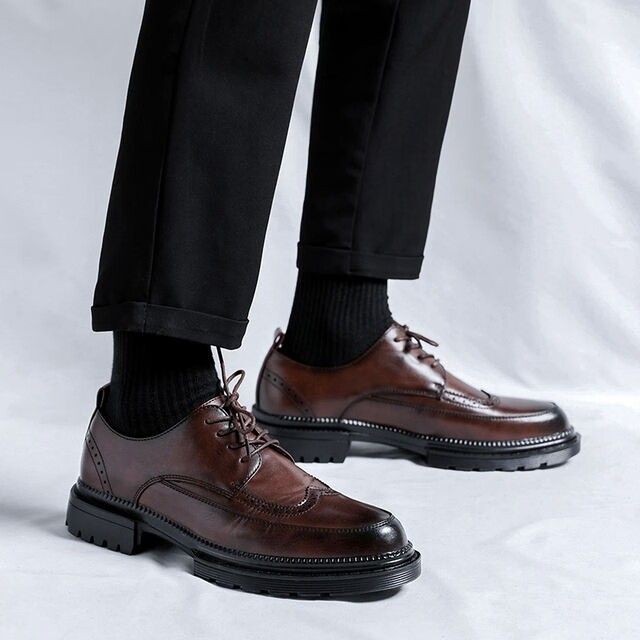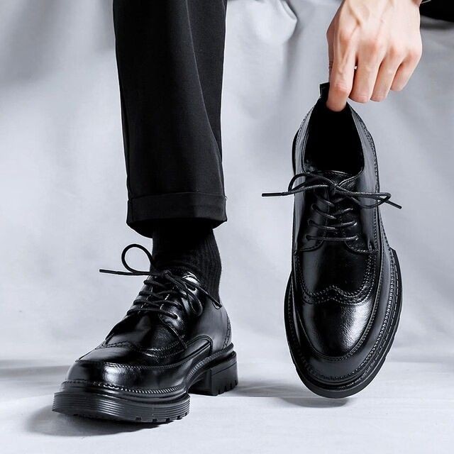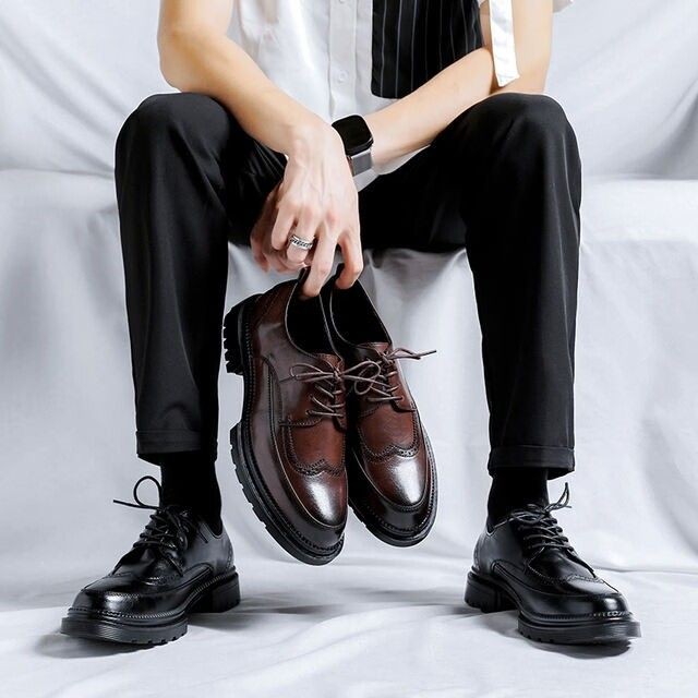 Giày da brogue nam mùa thu đông mới, giày công sở chính thức tăng chiều cao, giày derby phong cách Anh, giày phù hợp cho