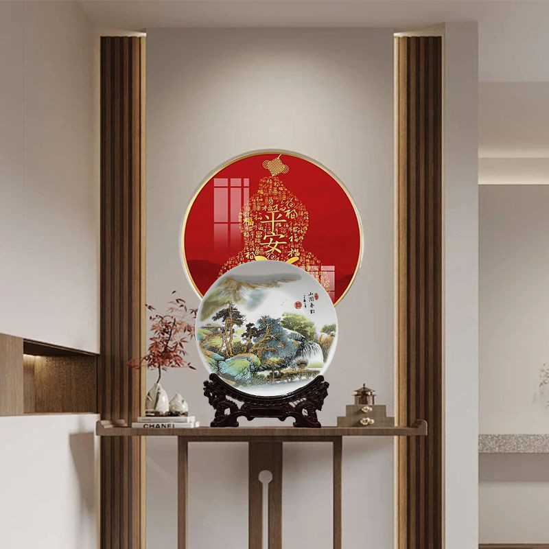 Trang trí gốm sứ Jingdezhen phong cách Trung Quốc, nghệ thuật phòng khách, tranh ngàn dặm sông núi, tủ rượu, trang trí p