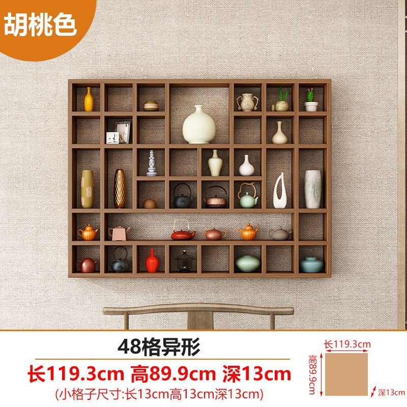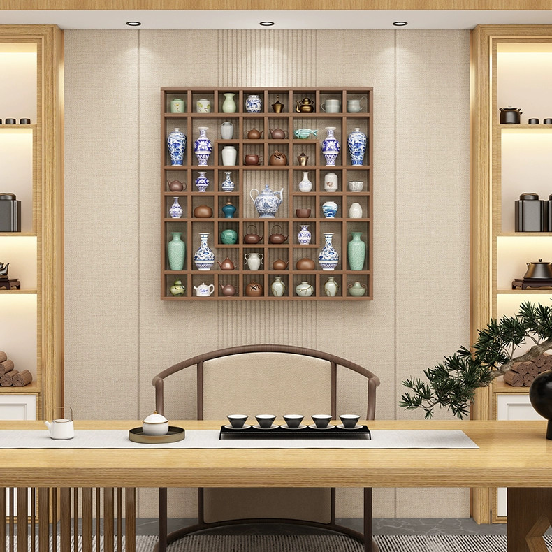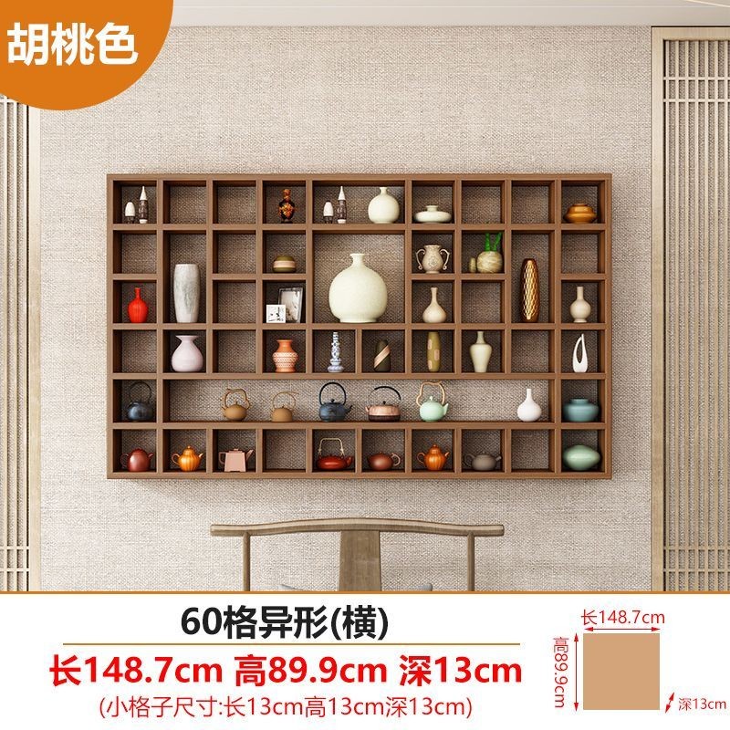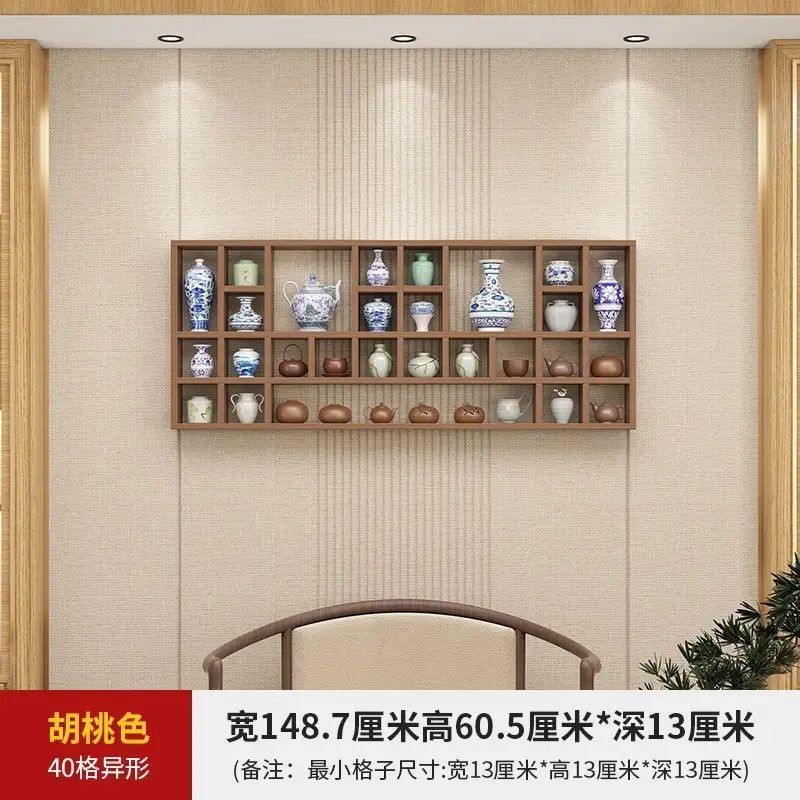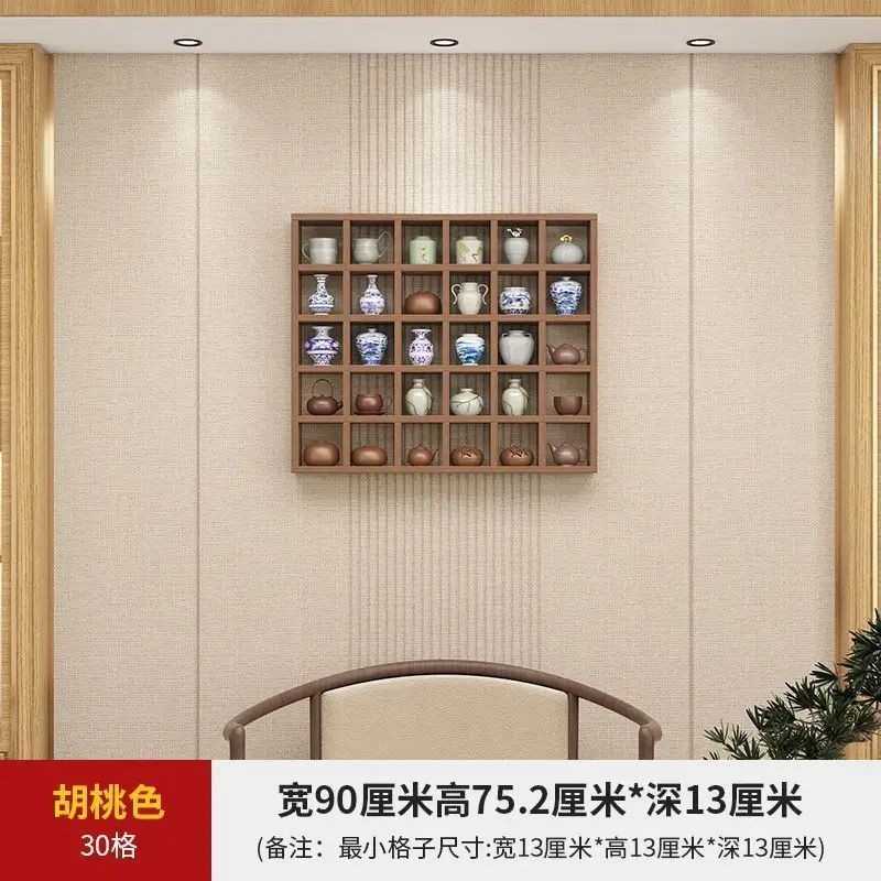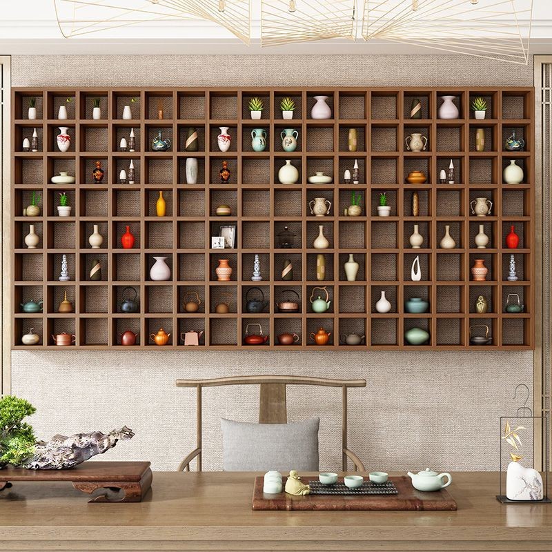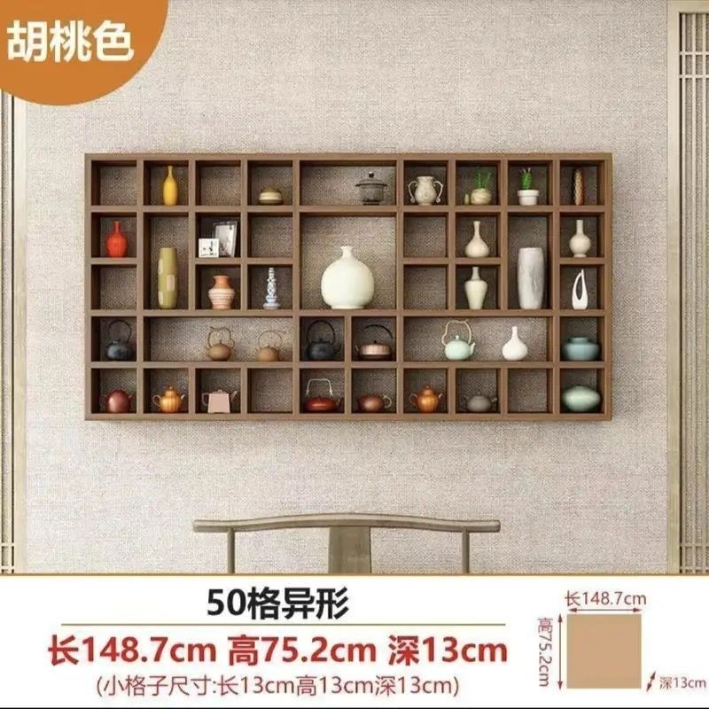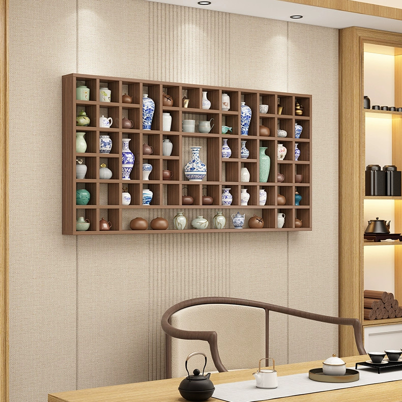 Kệ lưu trữ đa lưới bằng gỗ nguyên khối, kệ trưng bày gắn tường, tủ tổ chức đa lưới, kệ đựng ấm trà, tách trà, tủ đa kho