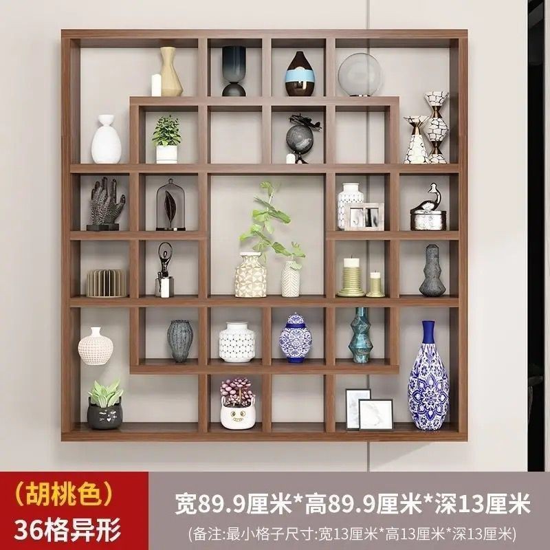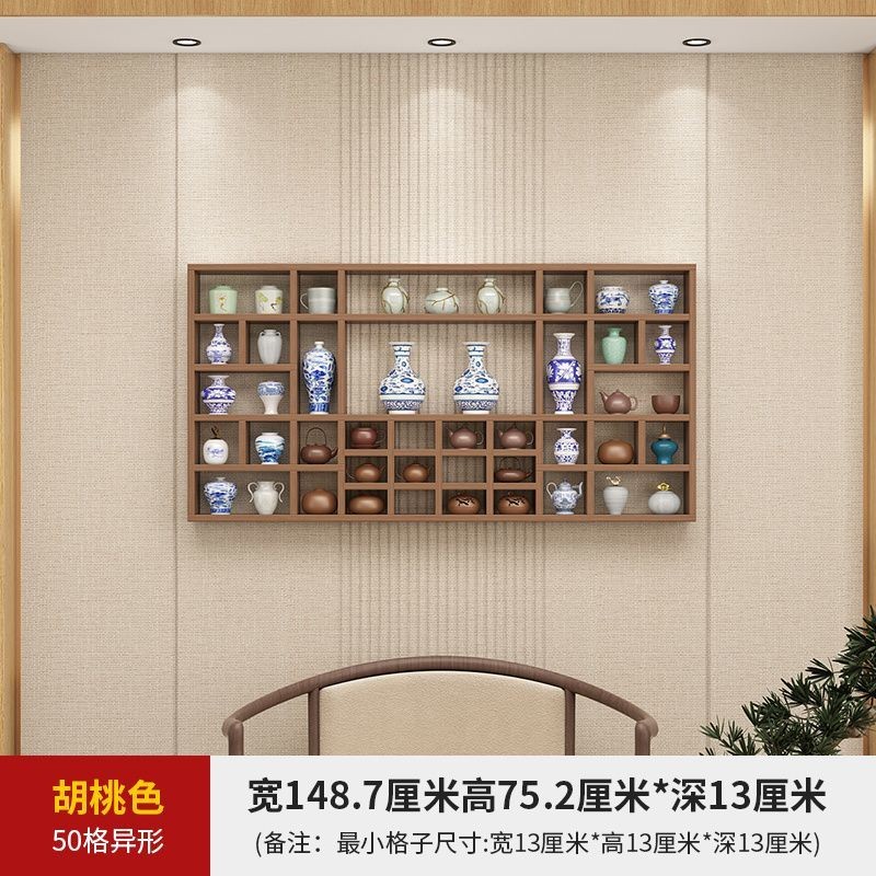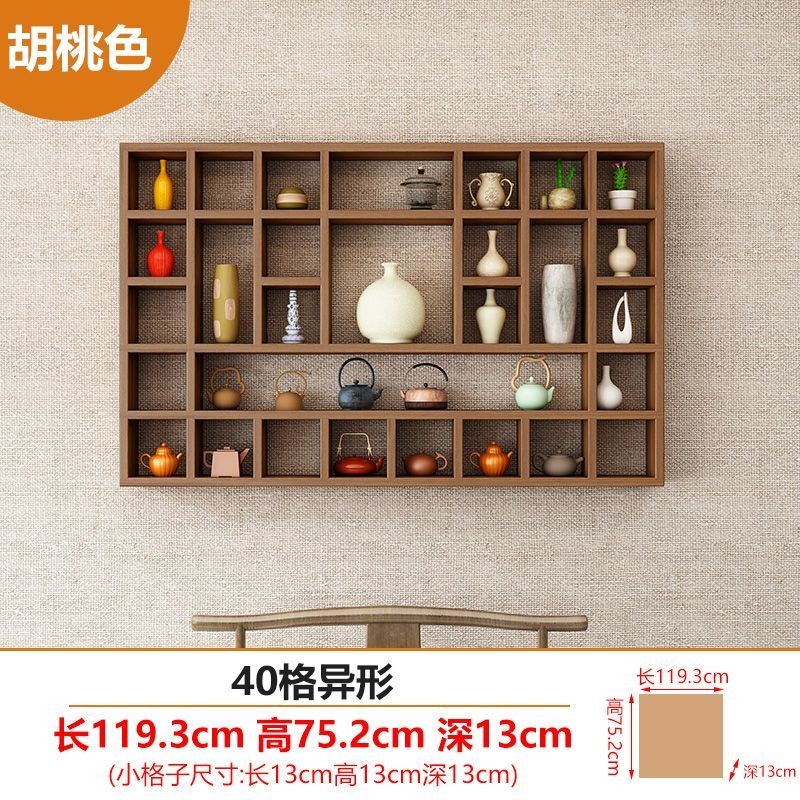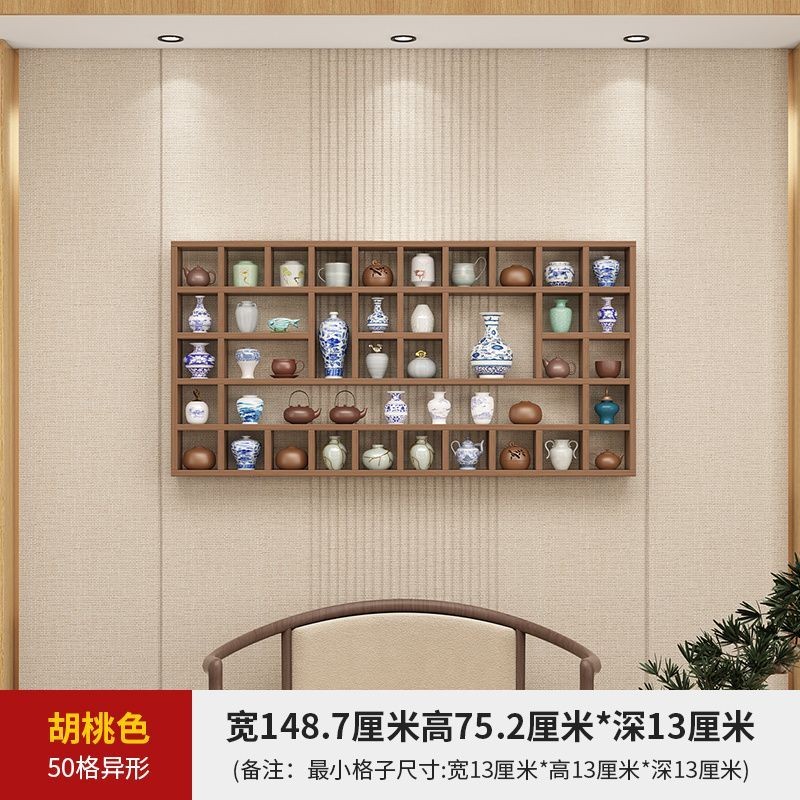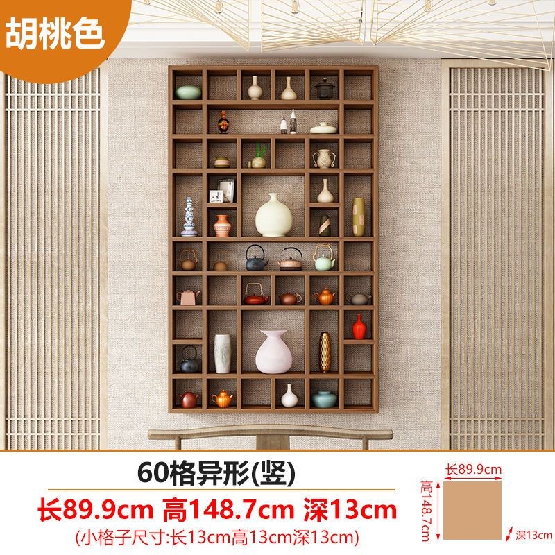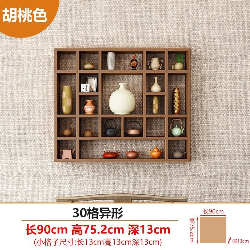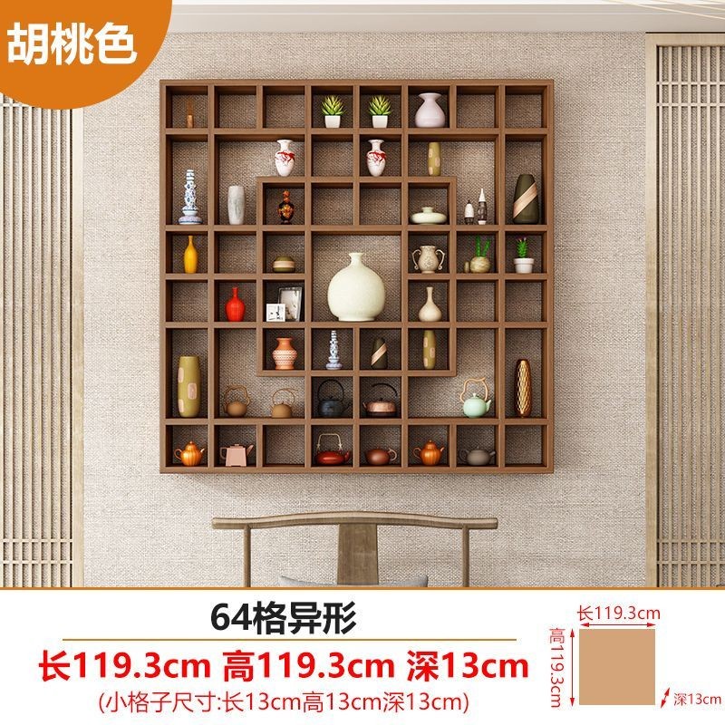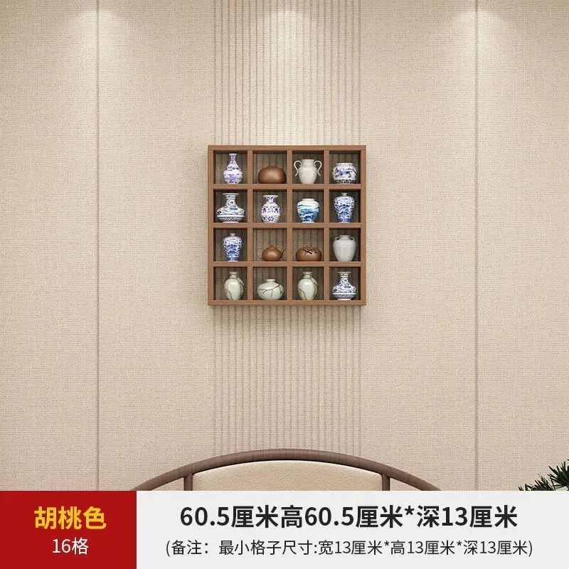 Kệ lưu trữ đa lưới bằng gỗ nguyên khối, kệ trưng bày gắn tường, tủ tổ chức đa lưới, kệ đựng ấm trà, tách trà, tủ đa kho