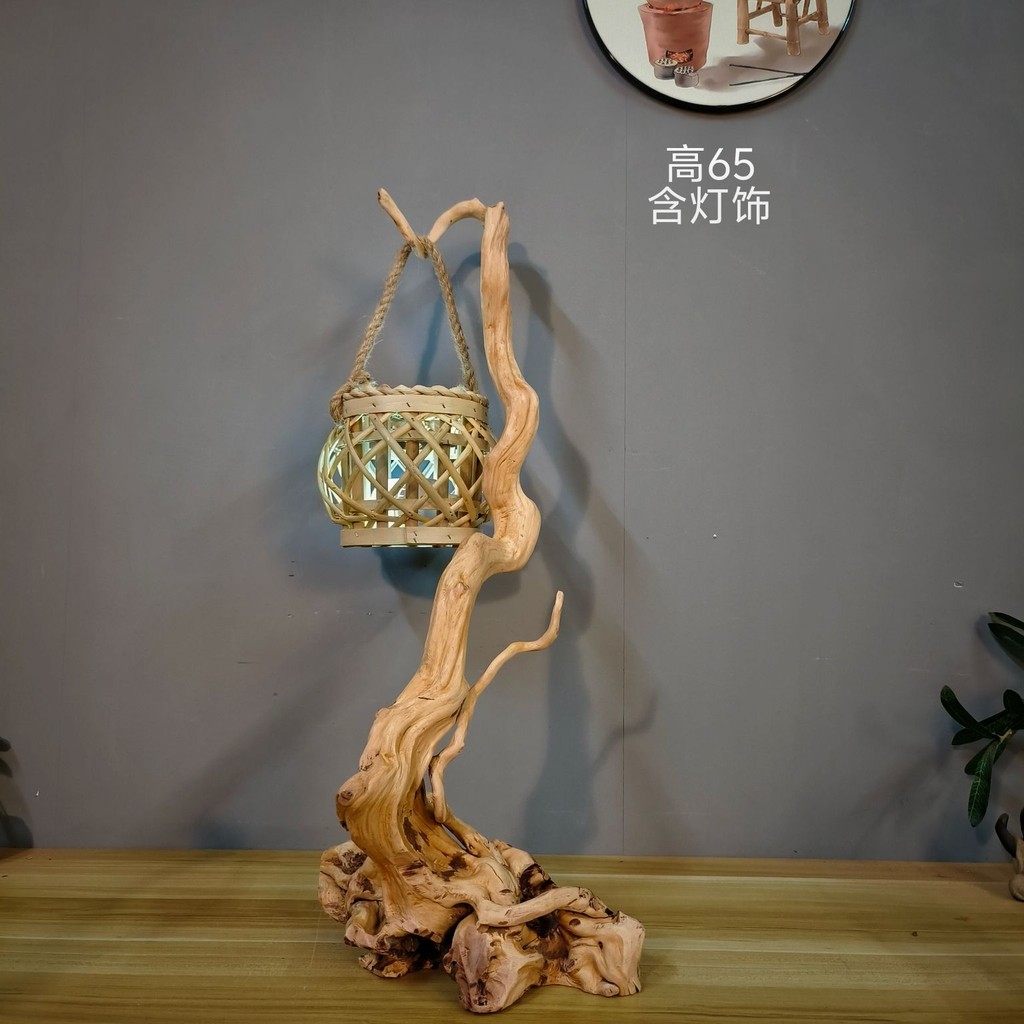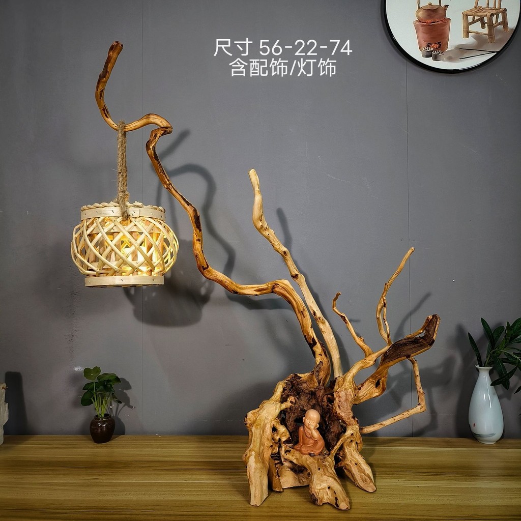 Đèn sàn khắc gốc thuja, đèn bàn trang trí lồng chim, đèn chiếu sáng zen, giá đỡ đèn, trang trí cành tự nhiên tự nhiên