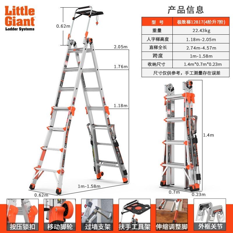 Thang gấp đa chức năng Redojet American Little Giant, thang A-frame bằng hợp kim nhôm dày, kỹ thuật