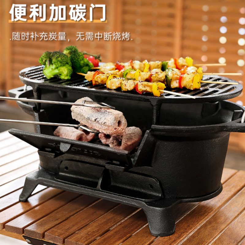 50*25cm Vỉ nướng BBQ bằng gang, vỉ nướng than, bếp pha trà gia đình, giá nướng BBQ, vỉ nướng ngoài trời, chảo nướng, bếp