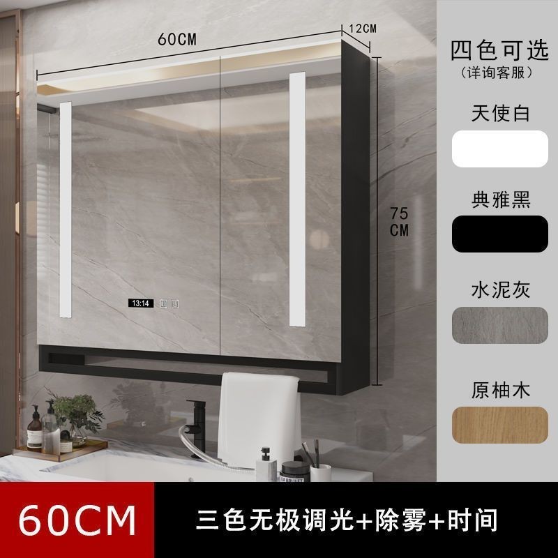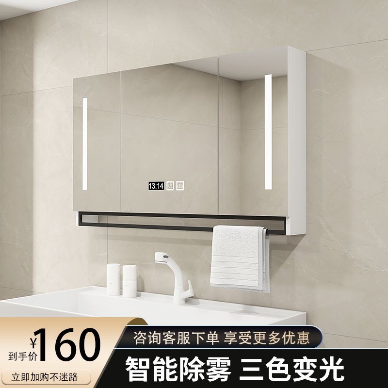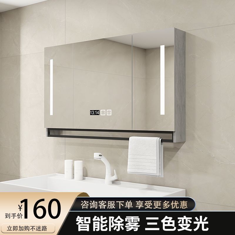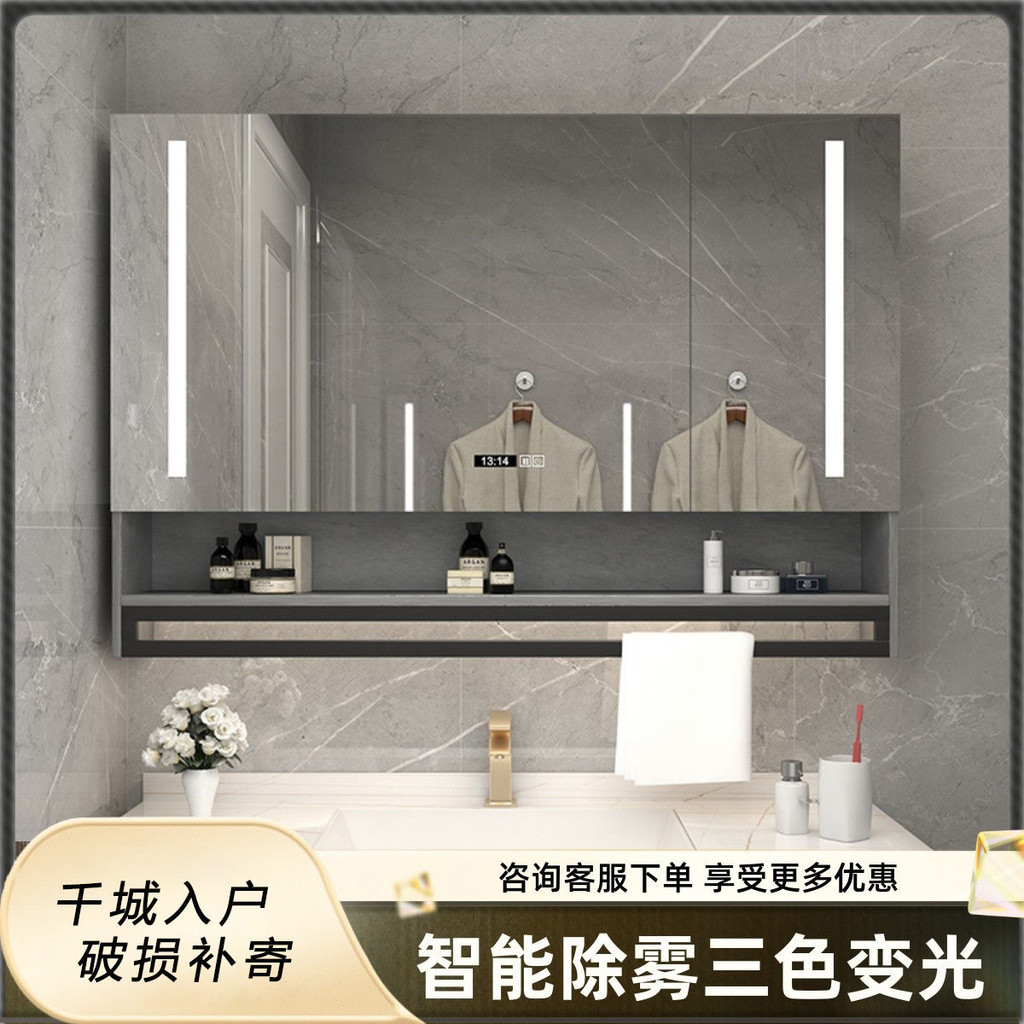 Tủ gương thông minh bằng gỗ tự nhiên cho phòng tắm, gương treo tường tự do, không mờ, có giá đỡ và đèn