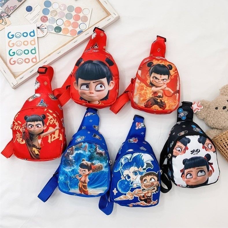 2025Túi đeo chéo hoạt hình mới cho trẻ em, túi ngực đa năng Nezha Ao Bing cho bé trai, ví tiền xu cho trẻ nhỏ, hợp thời