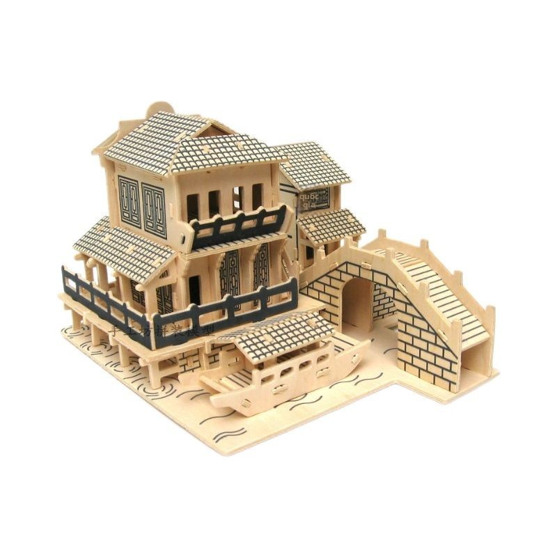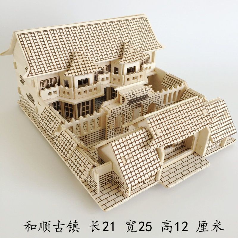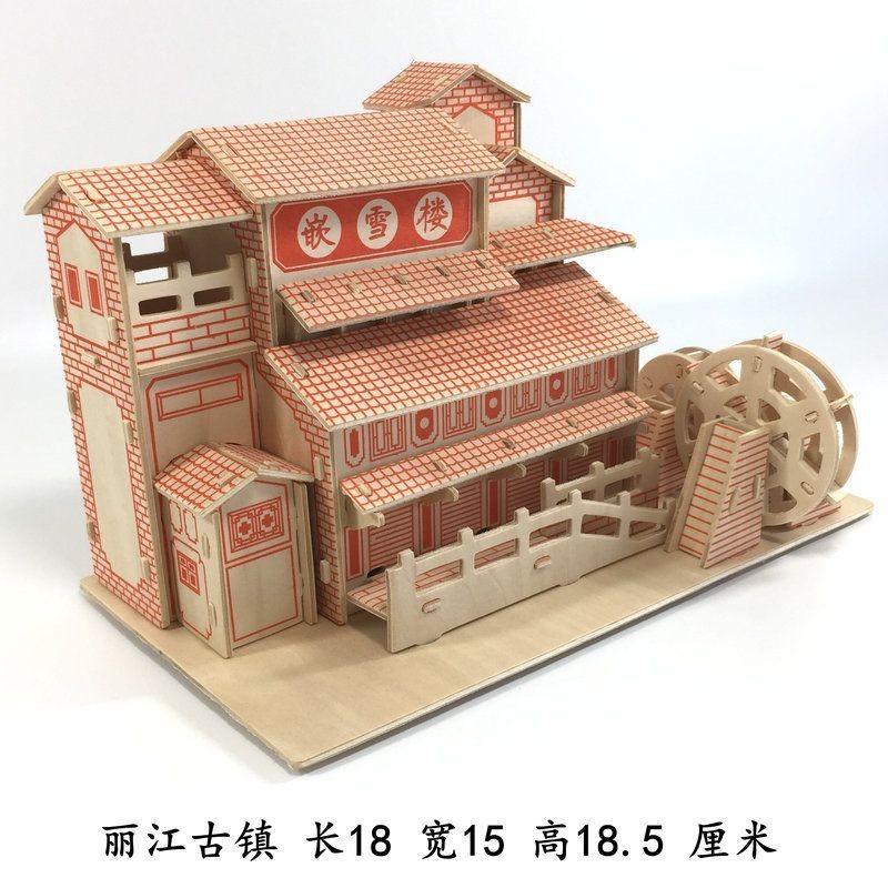 Nhà lắp ráp bằng gỗ ba chiều thủ công diy Đồ Chơi Trí Tuệ3D Mô hình thị trấn kiến trúc cổ bằng gỗ