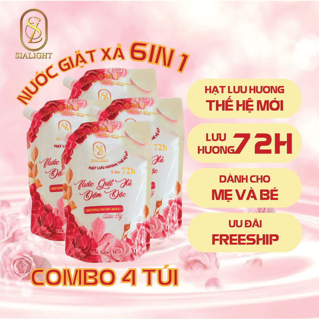[COMBO 4 TÚI] Nước Giặt Xả Sialight 6in1 – Đậm Đặc, Lưu Hương Nước Hoa – Dùng Cho Bé & Cả Gia Đình