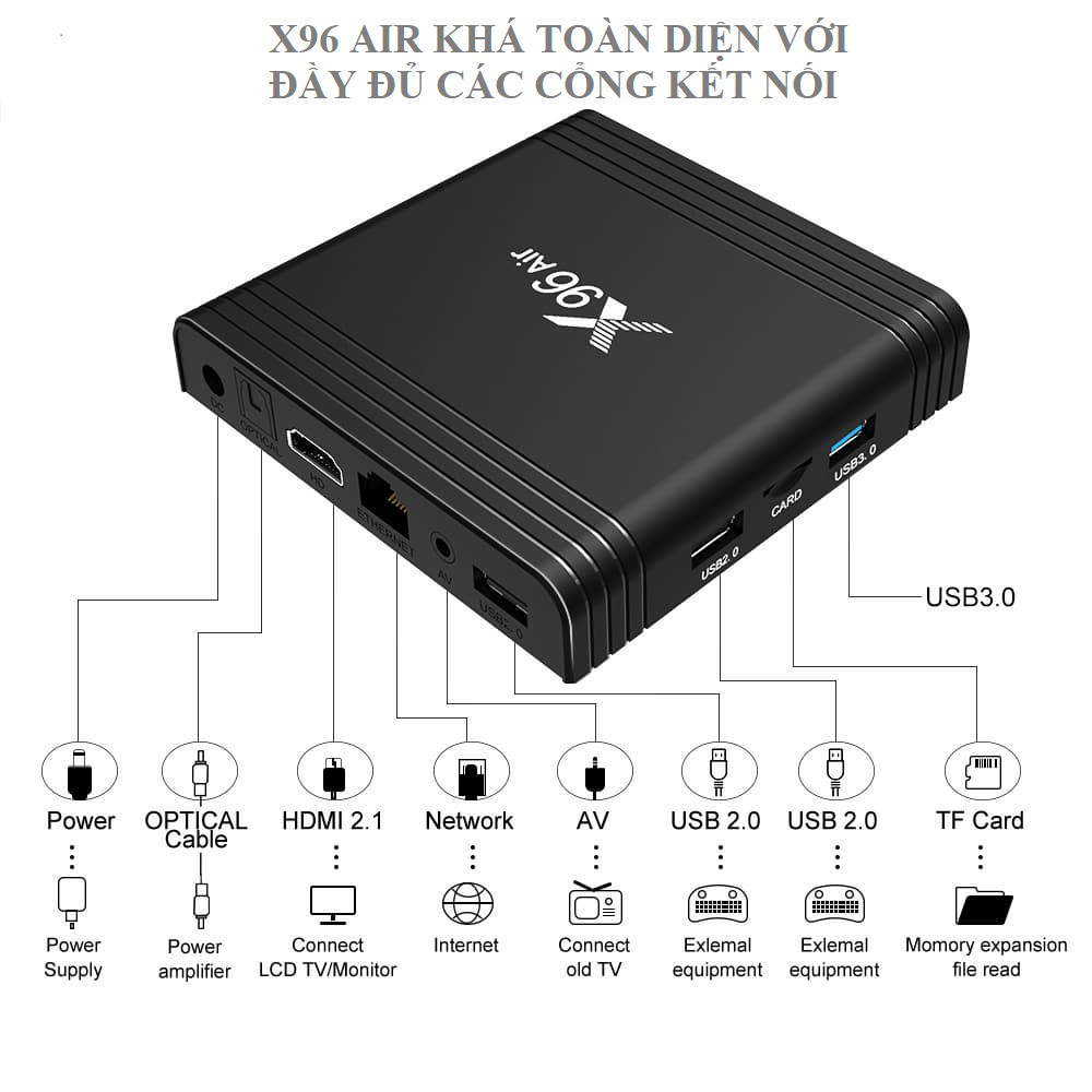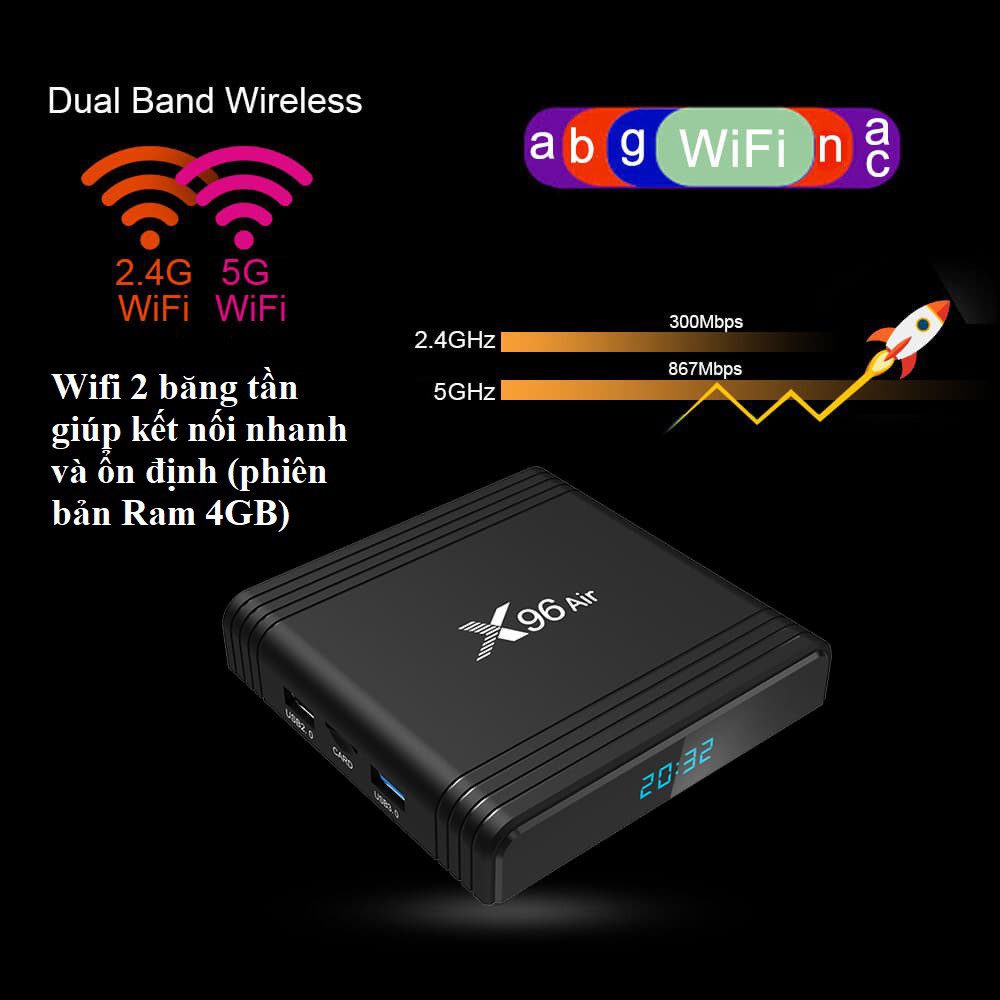 Android Box X96 Air, S905X3, 4GB Ram, Rom 32GB, Android TV 9, Wifi Dual Band Mu-Mimo, Bluetooth 4.1