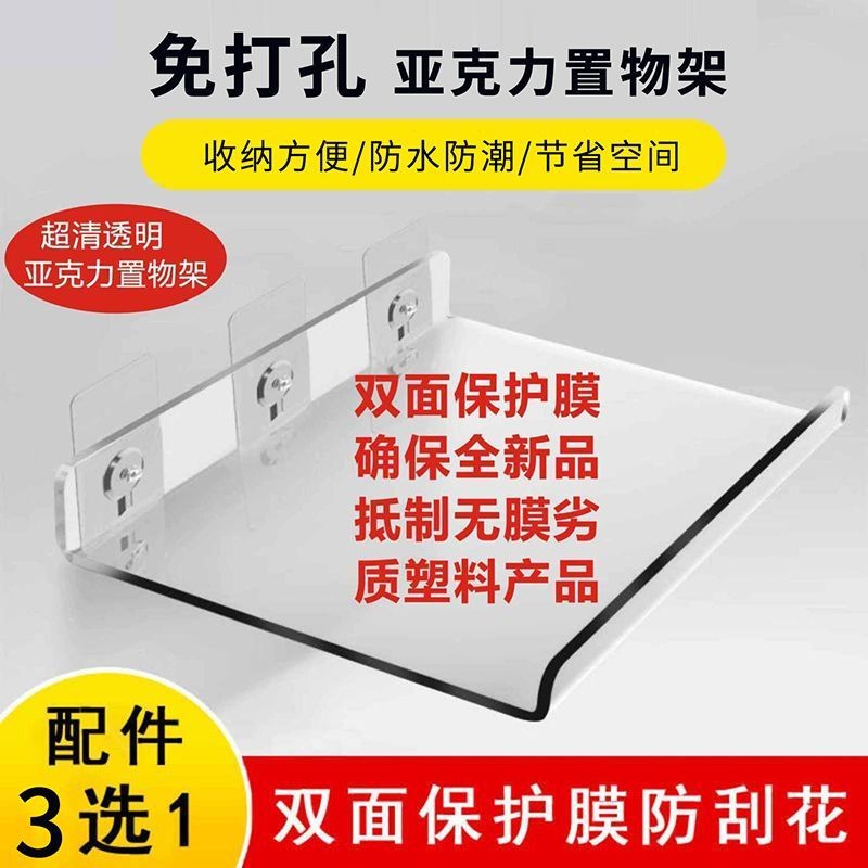Kệ treo tường acrylic không cần khoan cho phòng tắm, bếp, vòi sen, giá lưu trữ gắn tường, bảng lưu trữ dính