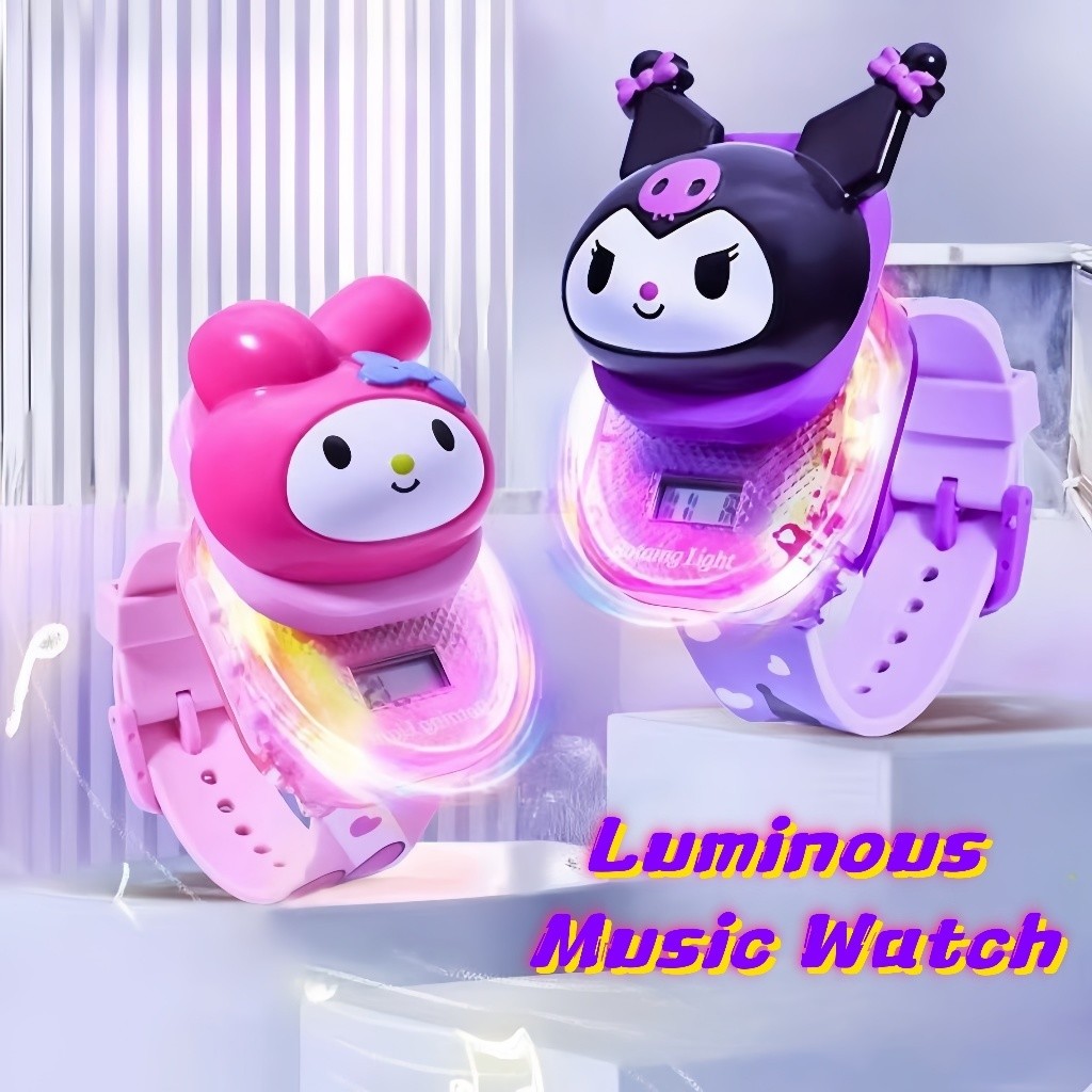 Đồng hồ Kuromi Sanrio Đồng hồ hoạt hình chống nước có đèn LED Âm nhạc cho trẻ em Quà tặng học sinh