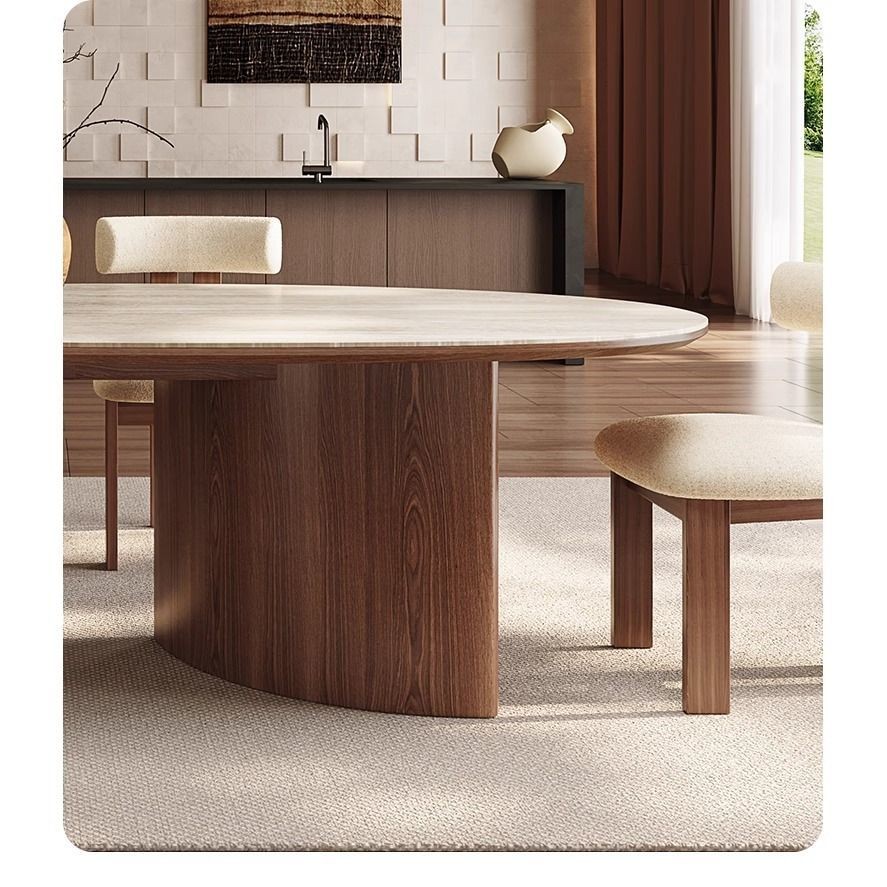 Bộ bàn ăn và ghế bằng gỗ nguyên khối, màu óc chó hiện đại đơn giản, phong cách vintage, bàn hình chữ nhật kiểu Ý