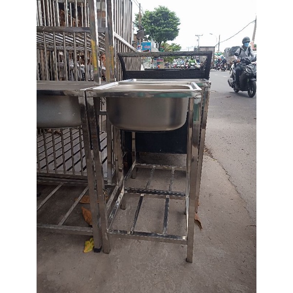 [ Tặng Vòi ] Chân chậu rửa bát, bồn rửa chén Inox 1 hộc, 1 hố cỡ nhỏ KT 42×37