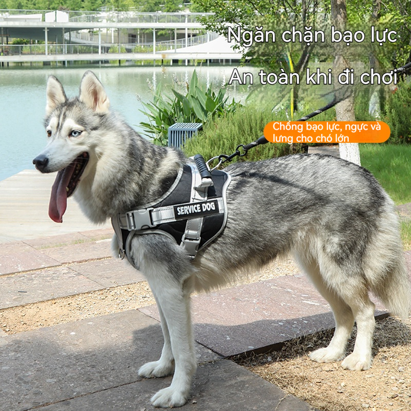 Dây ngực chó chống giật mạnh phản quang 360° – an toàn ban đêm cho chó lớn thoáng khí
