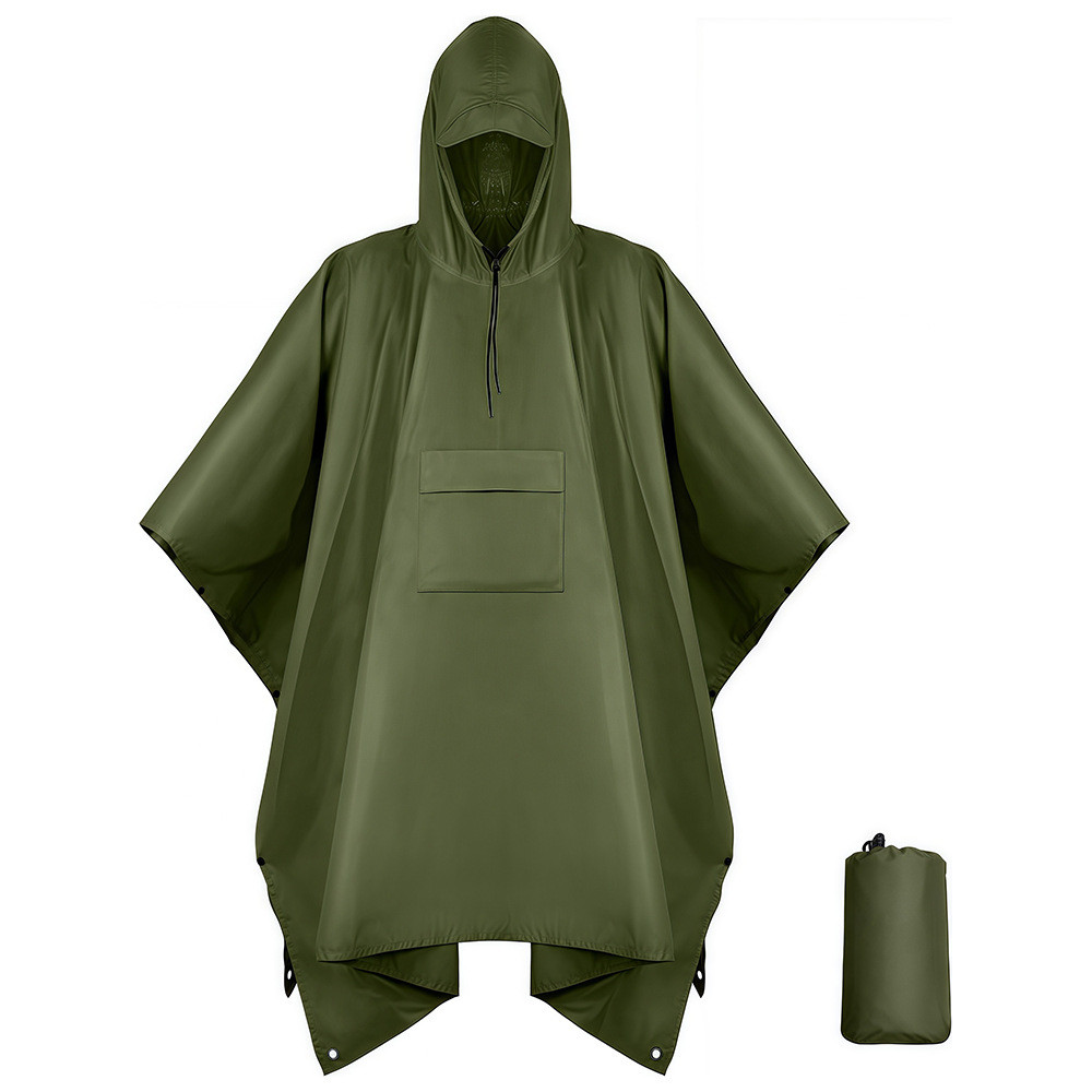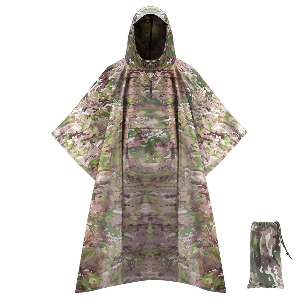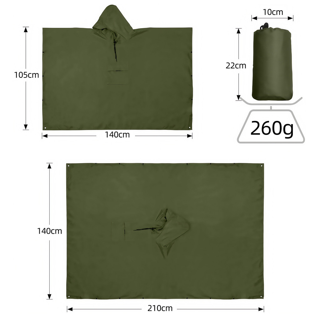 Áo mưa tán đa năng ba trong một - Thảm trải sàn & Balo leo núi ngoài trời, có mũ trùm đầu cho ngụy trang chiến thuật