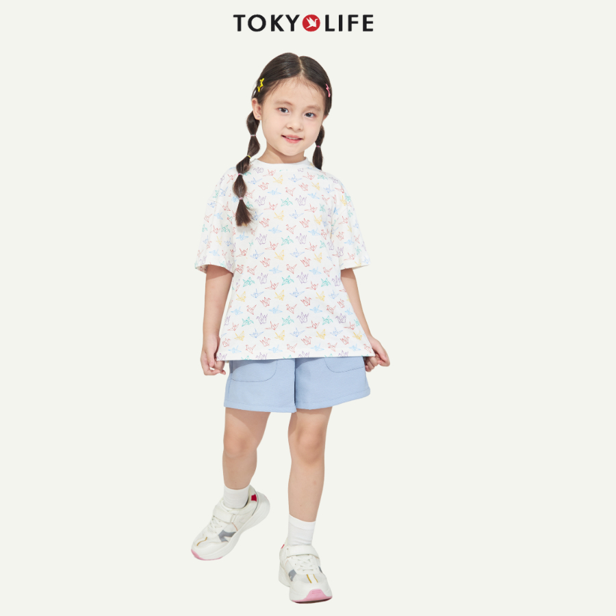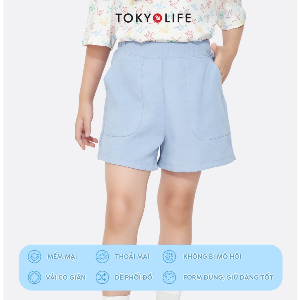 Quần short bé gái TOKYOLIFE quần đùi trơn basic cạp chun sau túi chéo 40003533