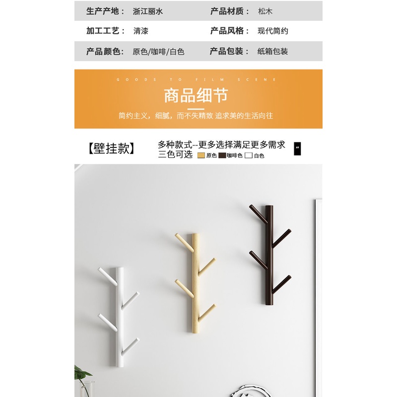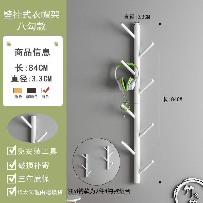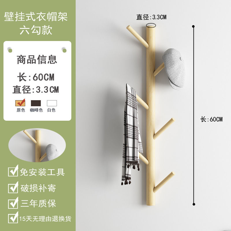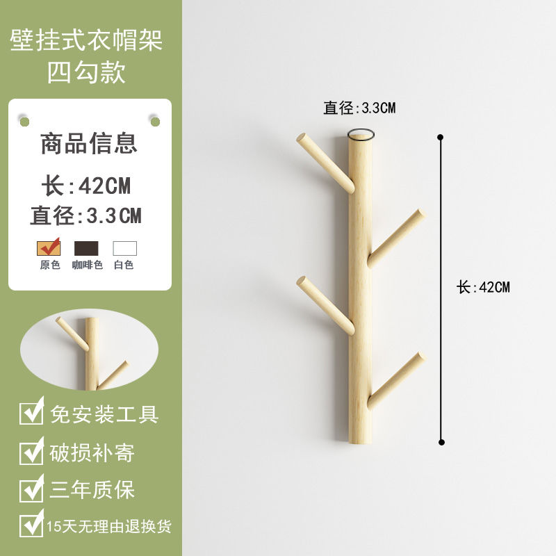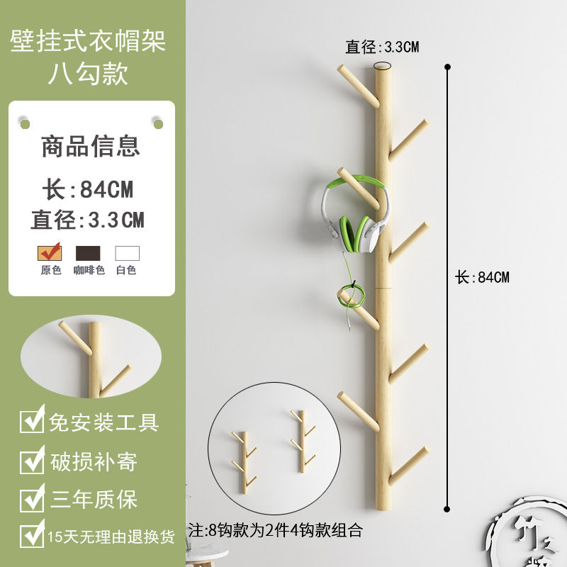 Bộ 4 / 6 / 8 Móc Treo Quần Áo Bằng Gỗ Gắn Tường Tiện Dụng