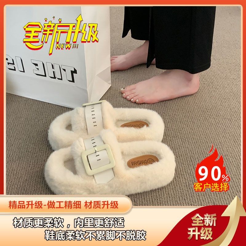Dép Mao Mao Nổi Tiếng Trên Internet Mặc 2023 Mới Phổ Biến Ở Nước Ngoài Dép Cotton Đa Năng Mùa Thu Đông Dày Kéo Một Từ