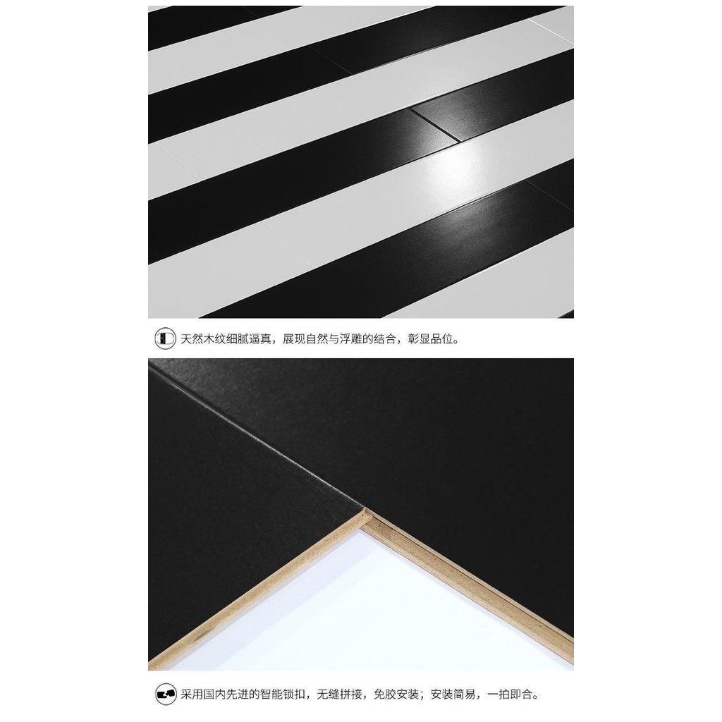 Sàn gỗ Laminate 12mm sàn gỗ tổng hợp màu trắng tinh khiết gia dụng cá nhân hóa chống mài mòn màu đen và trắng